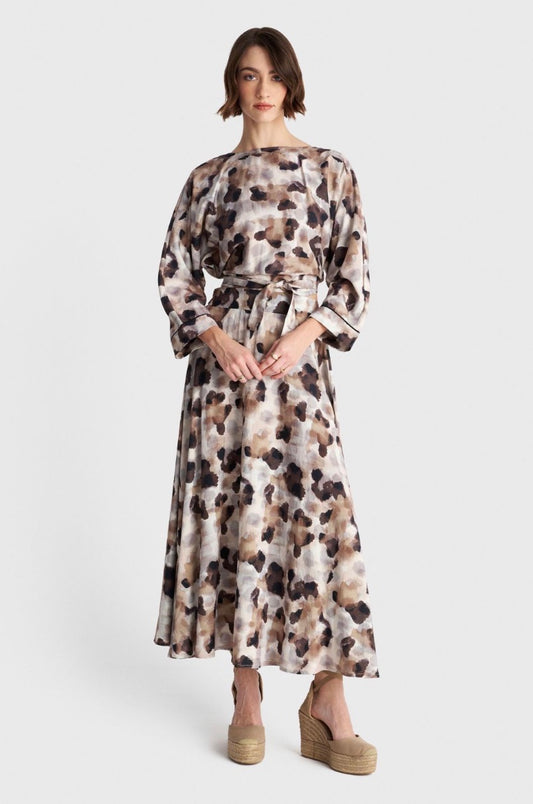 ALE - Set bluze dhe fund bezhe me printe shumengjyreshe