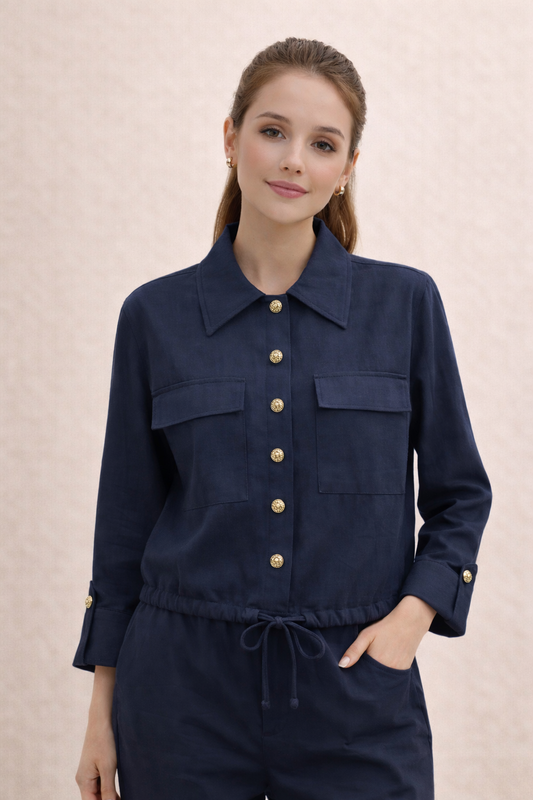 ONLY - Kemishe lino pana dhe blu me kopsa dhe xhepa