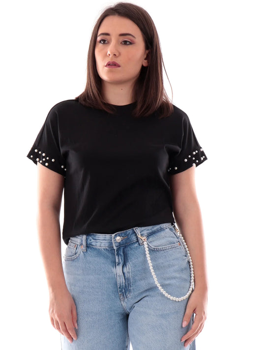 ONLY - Bluze pambuku e zeze dhe e bardhe me perla te menget