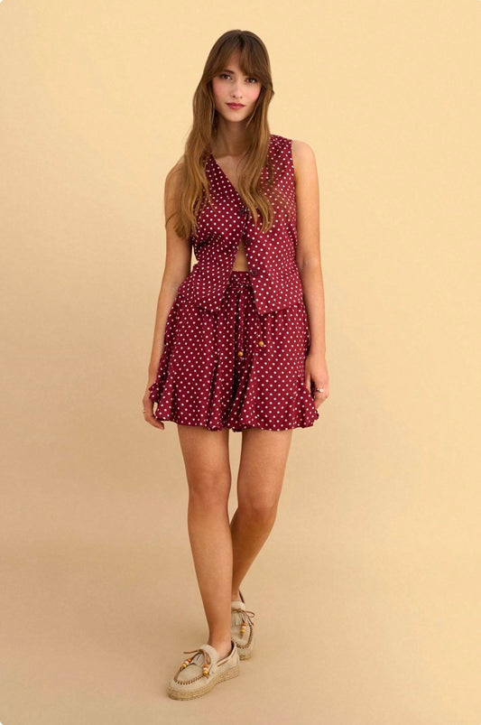 attrattivo - Set kemishe dhe fund i shkurter i kuq me pika