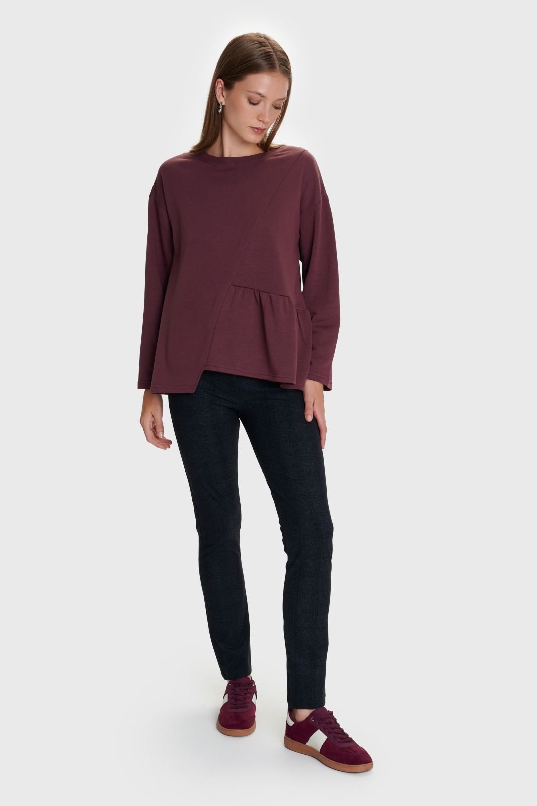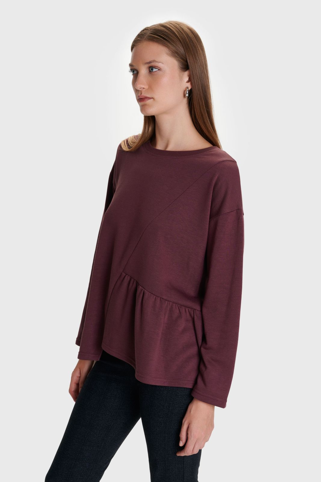 ALE - Bluze vishnje me menge te gjata dhe prerje asimetrike