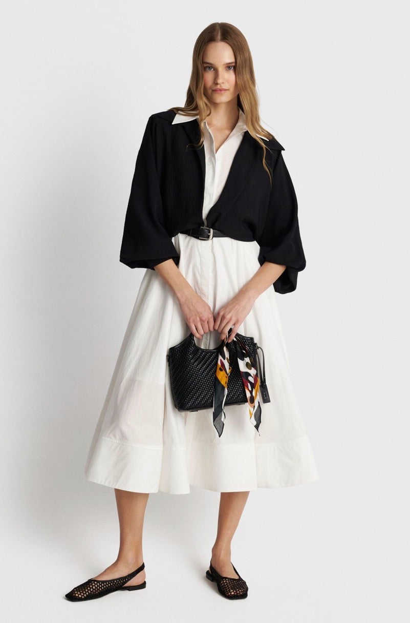 ALE - Fustan trecereksh i zi dhe i bardhe me rrip
