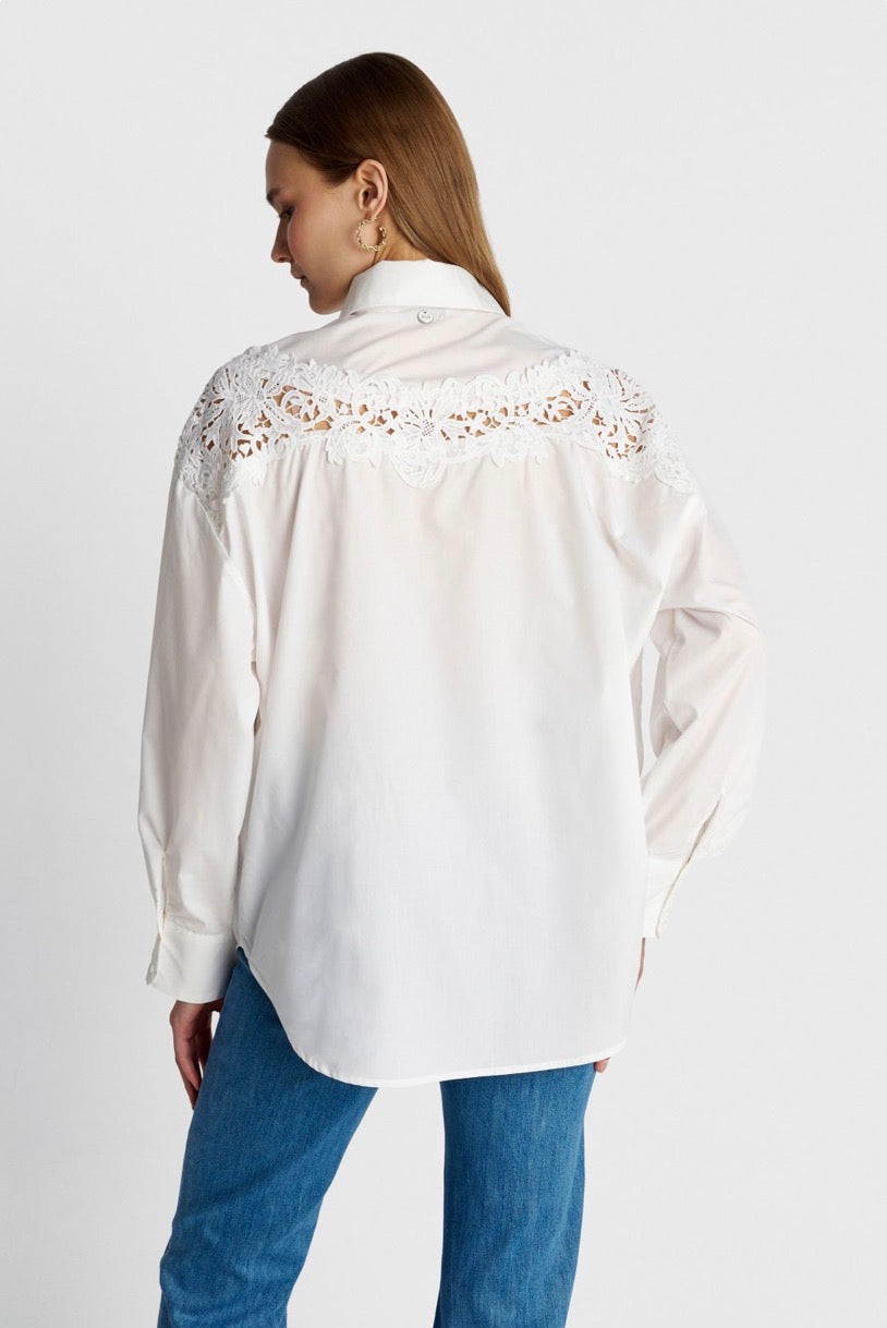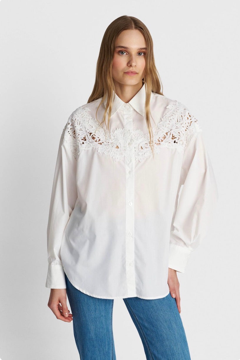 ALE - Kemishe pambuku e bardhe me detaje dantelle