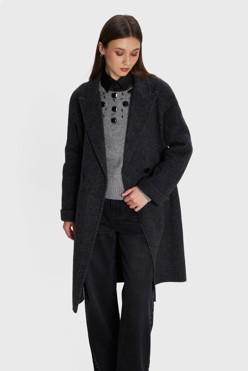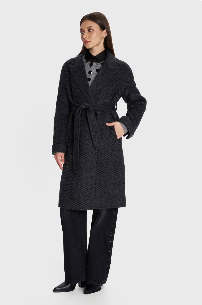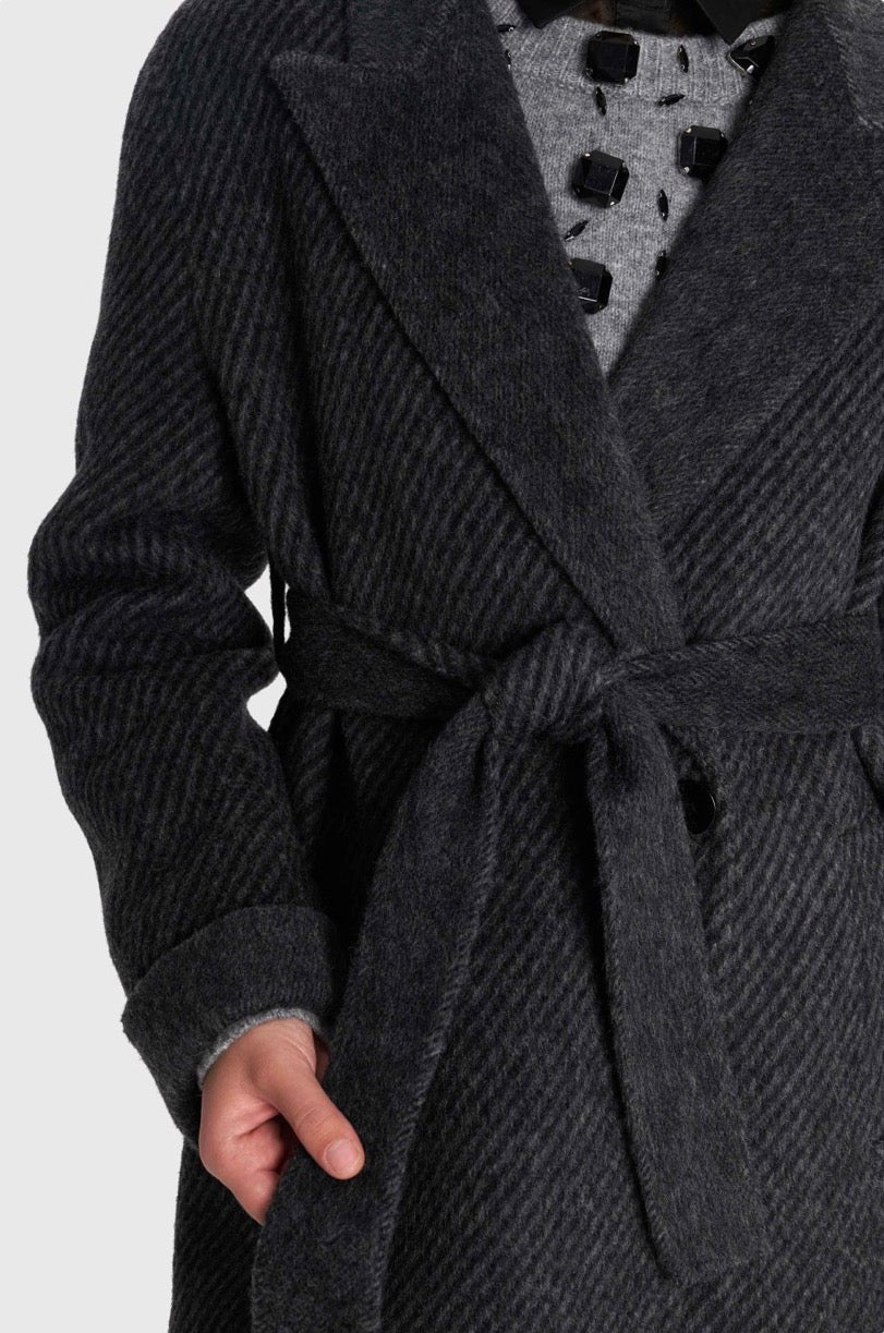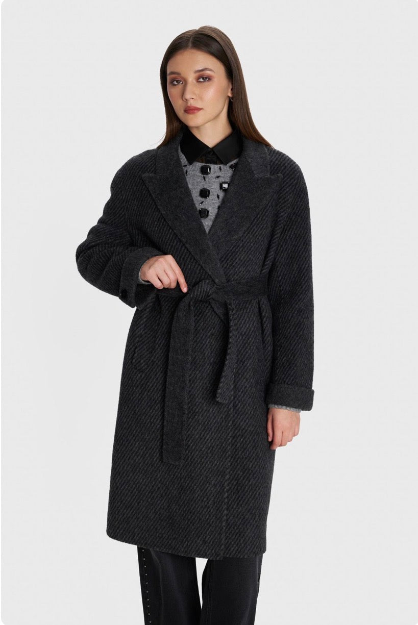 ALE - Pallto gri e gjate me lidhje