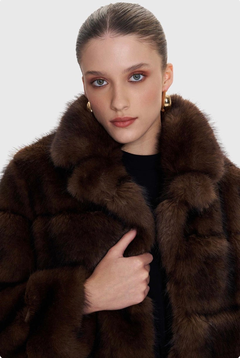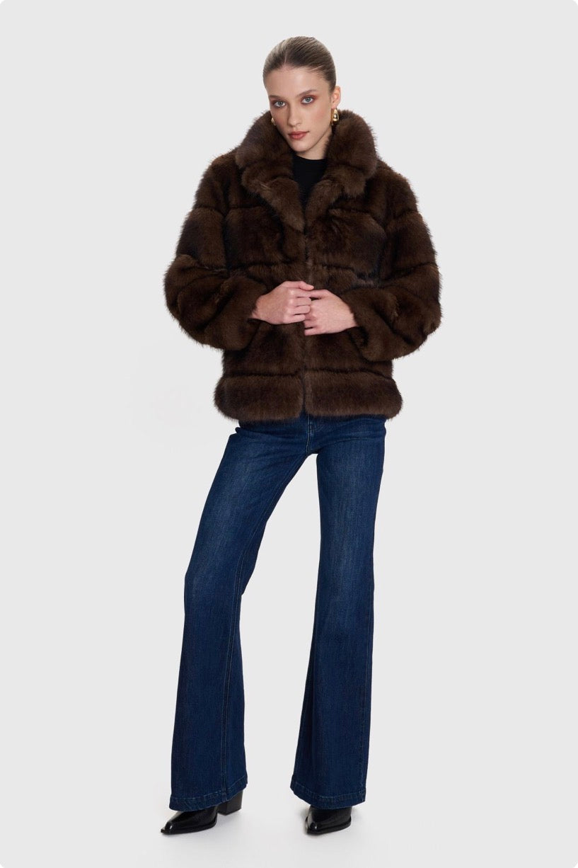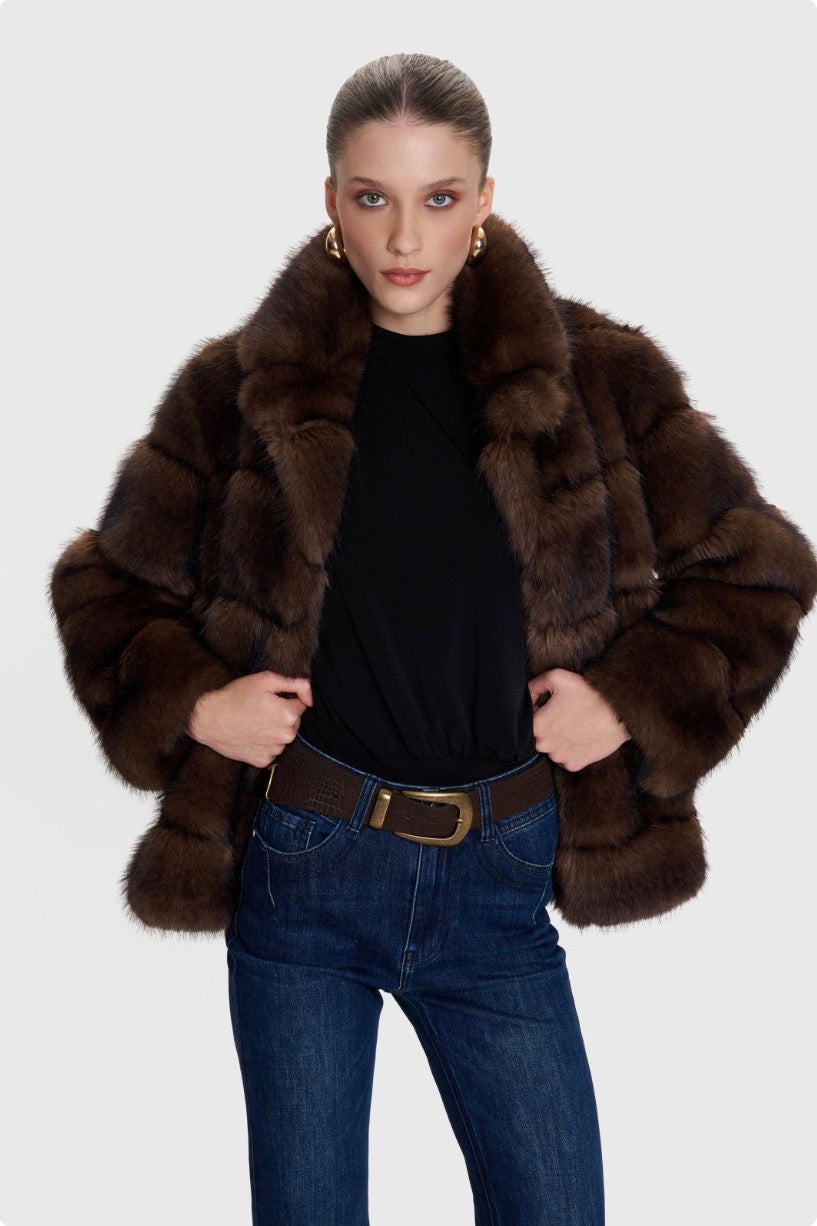 ALE - Pallto e shkurter kafe me pellush