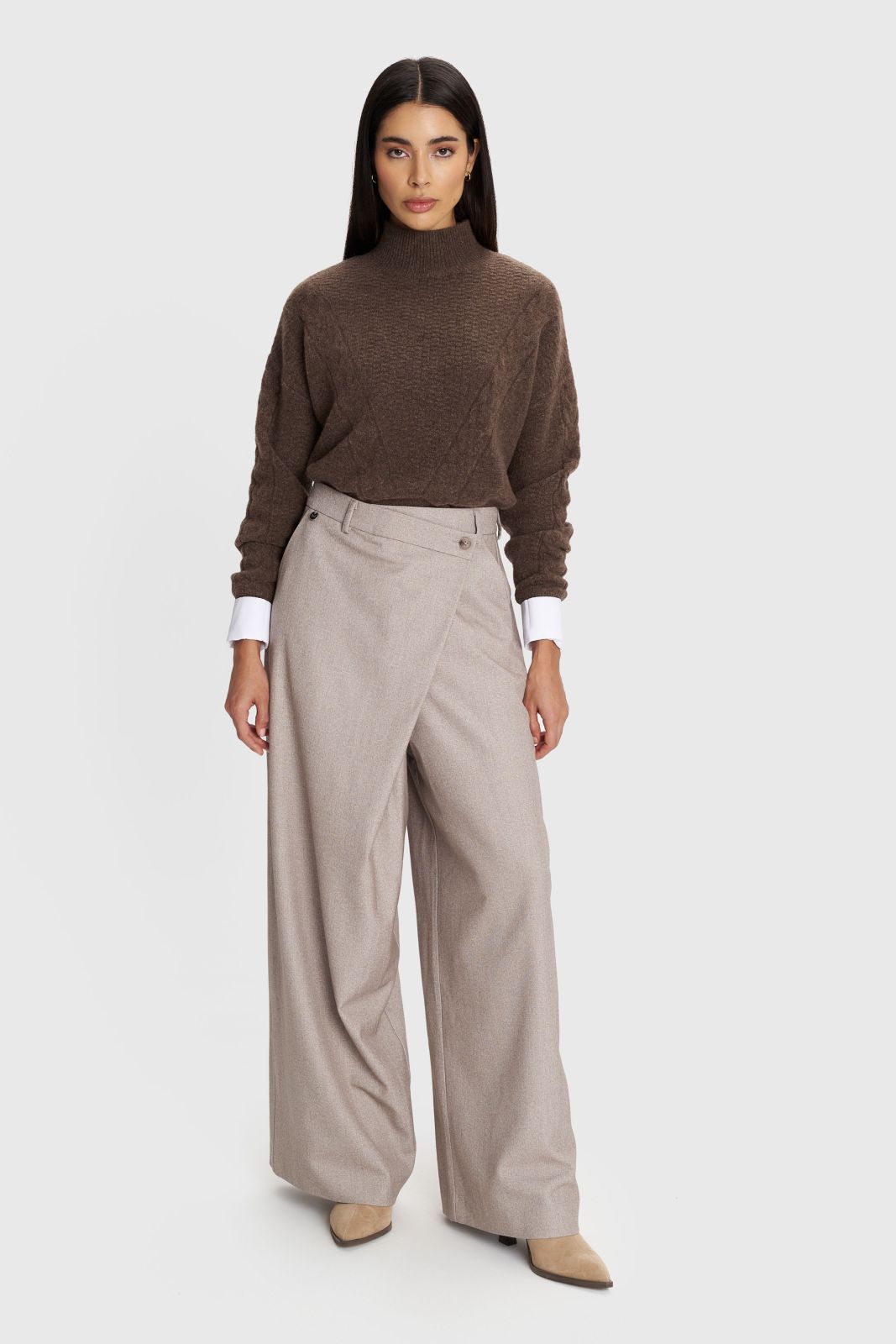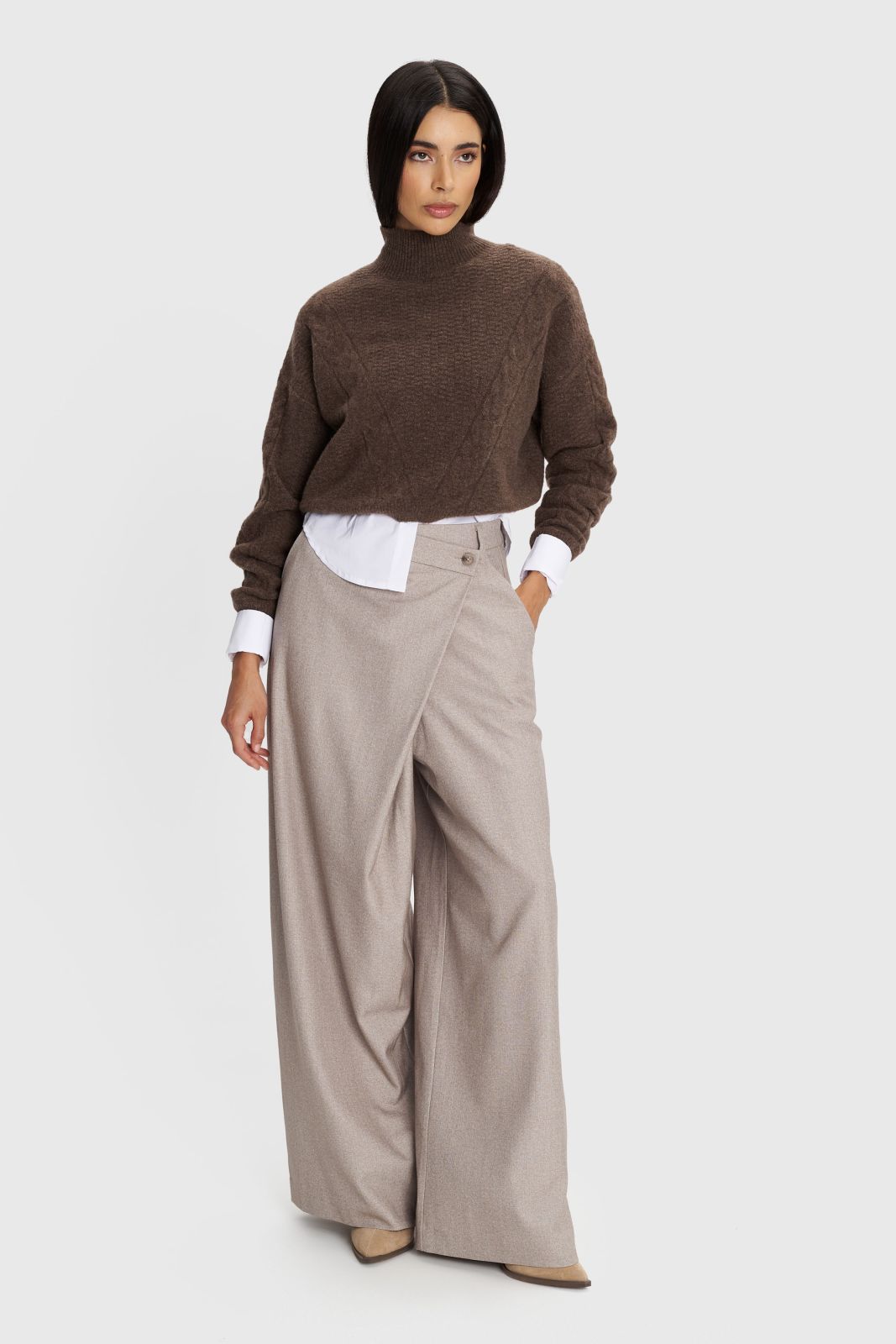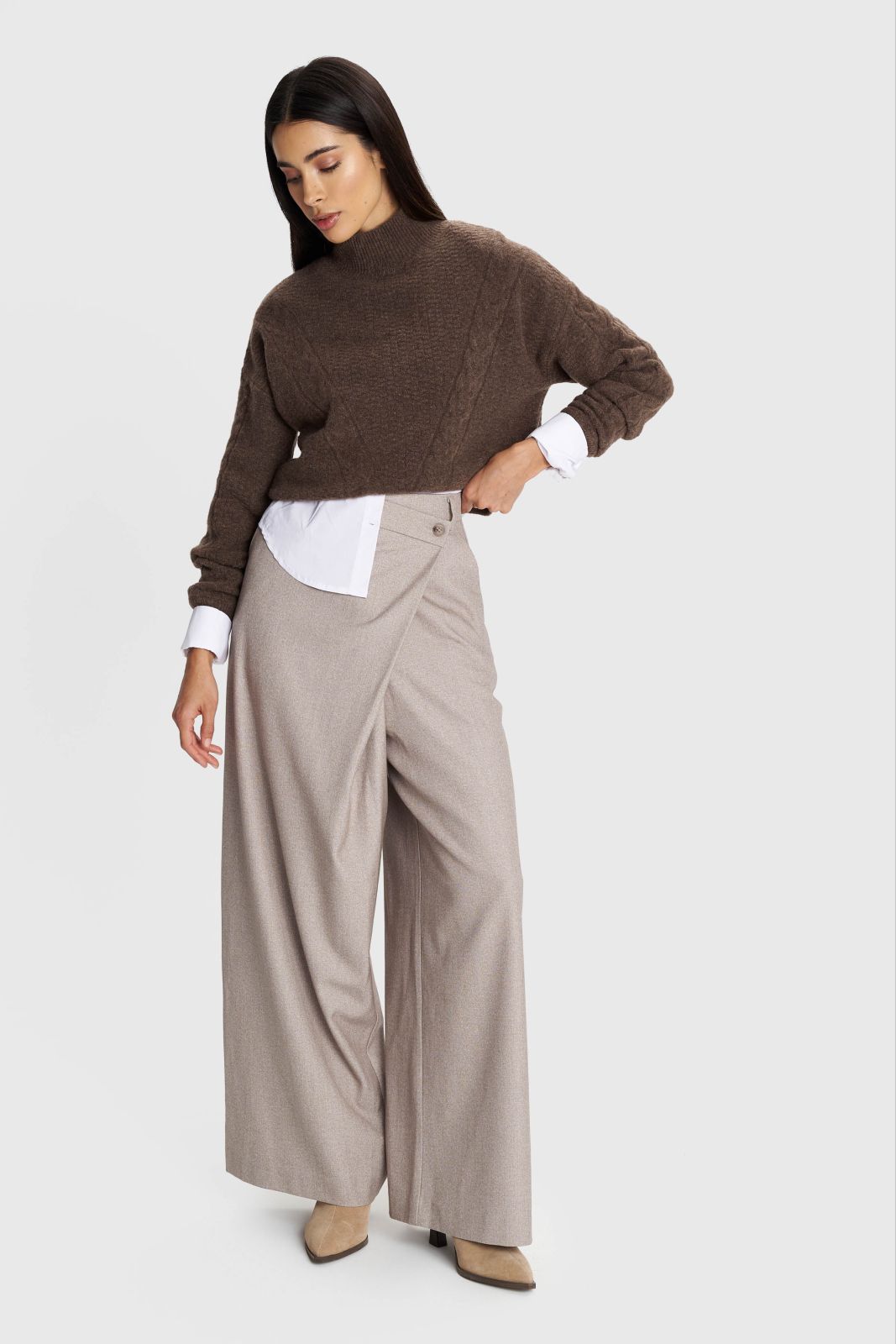 ALE - Pantallona bezhe me prerje te gjere