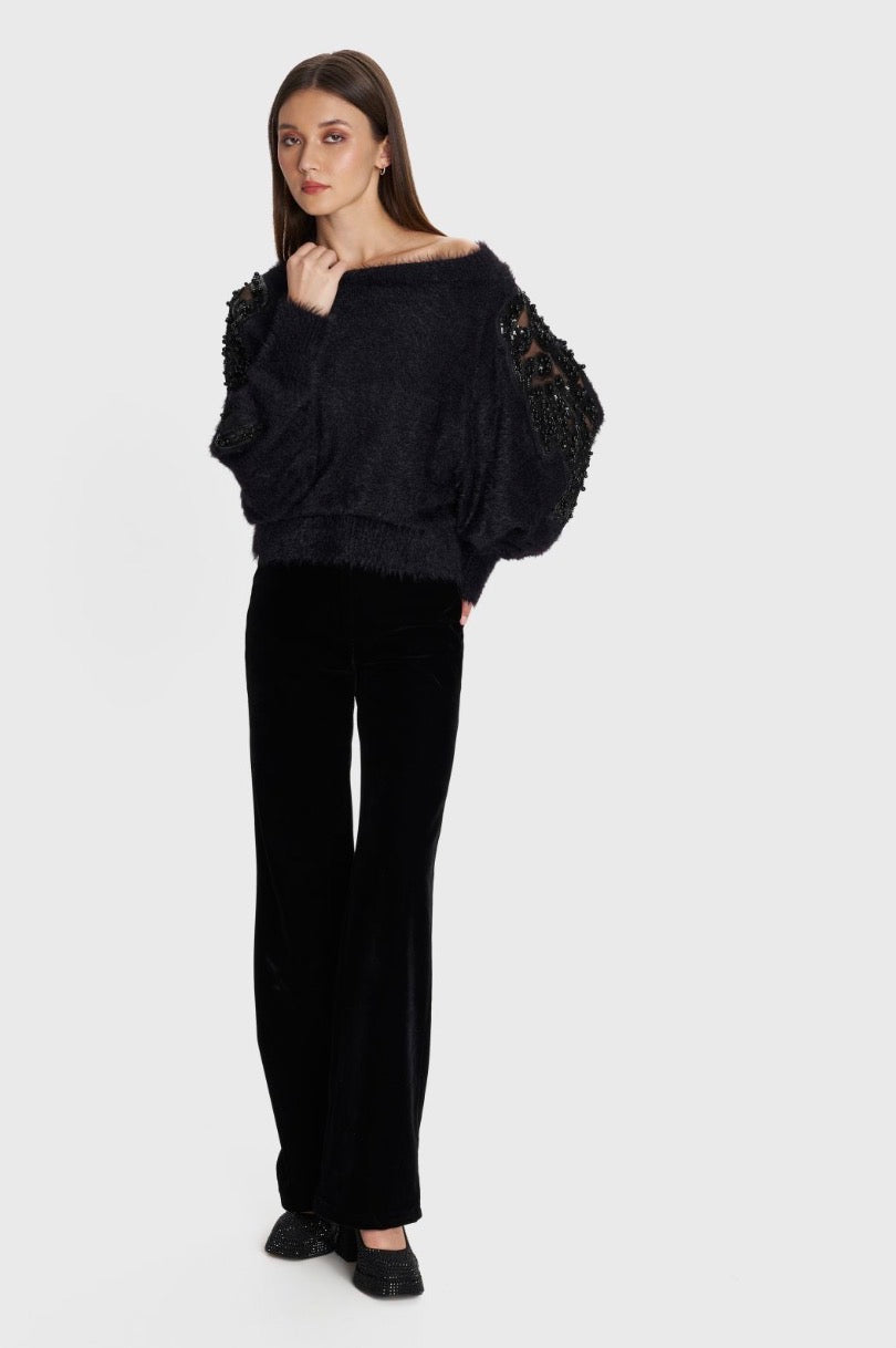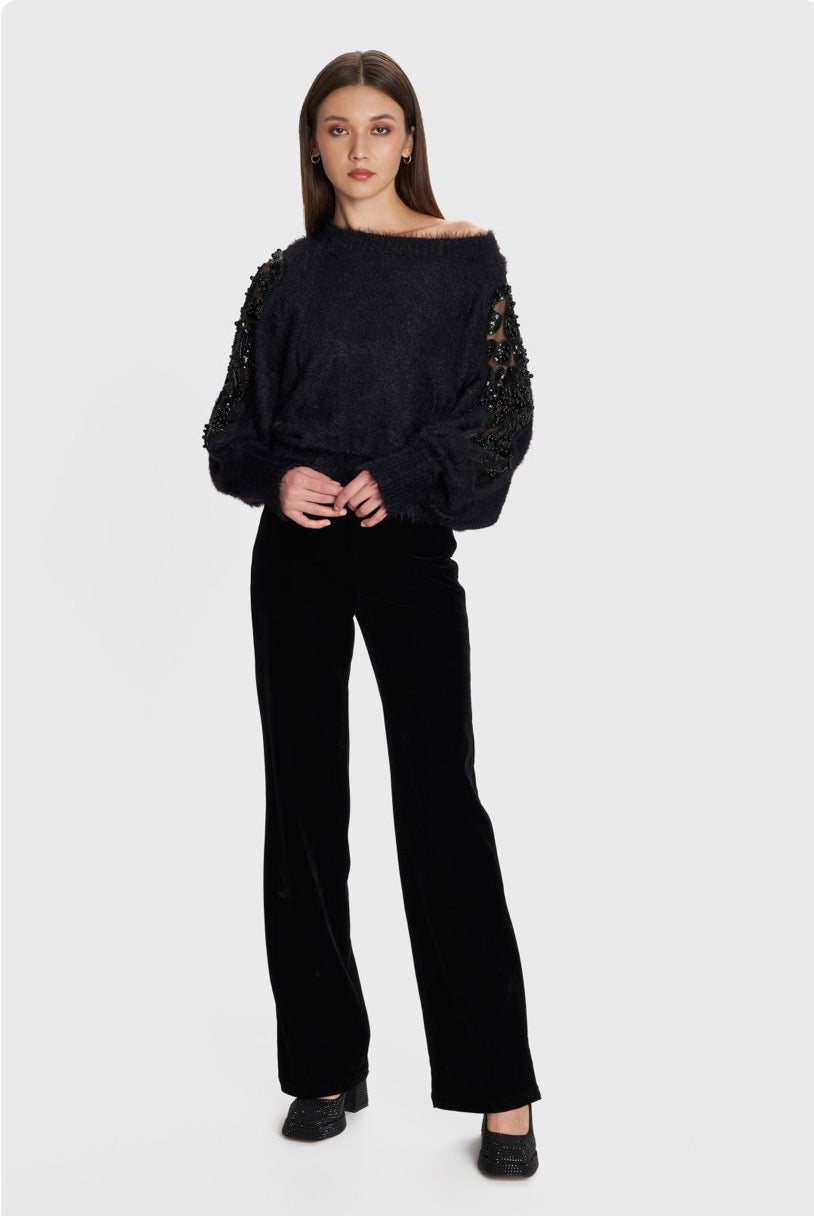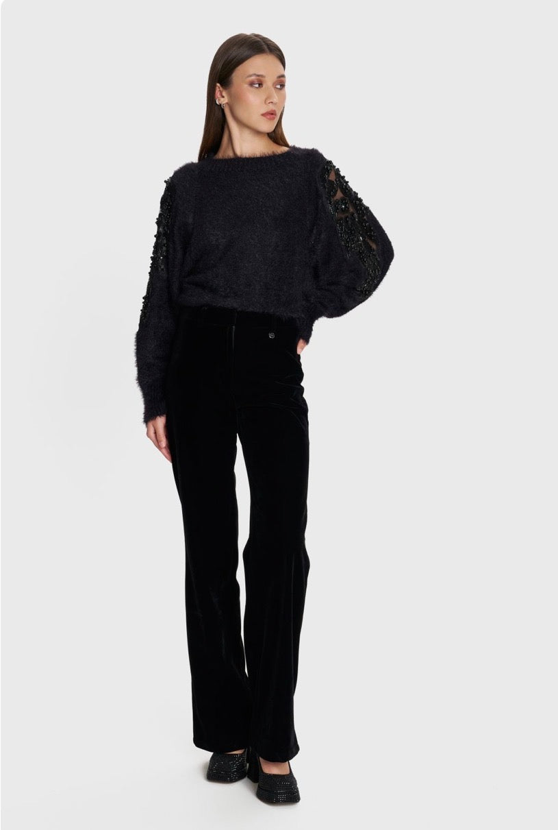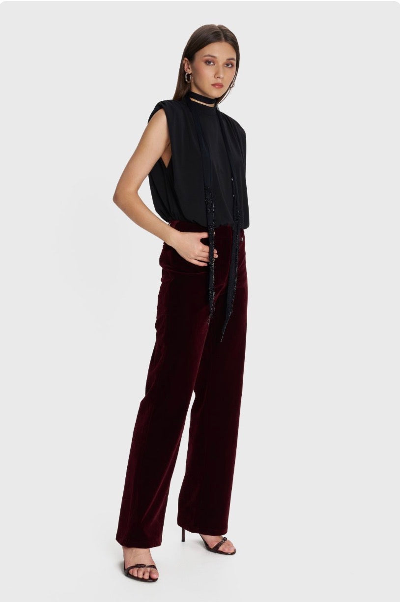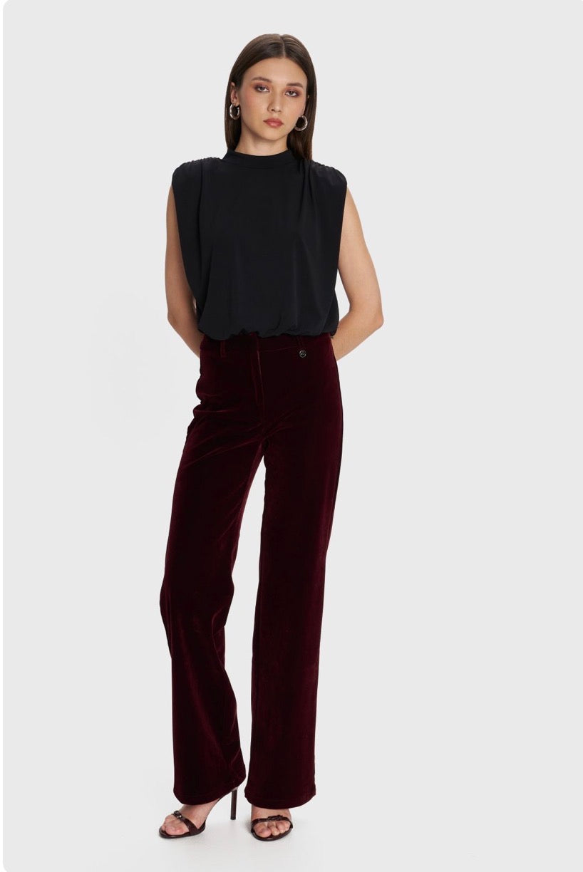 ALE - Pantallona veludhe vishnje dhe e zeze ne prerje te drejte