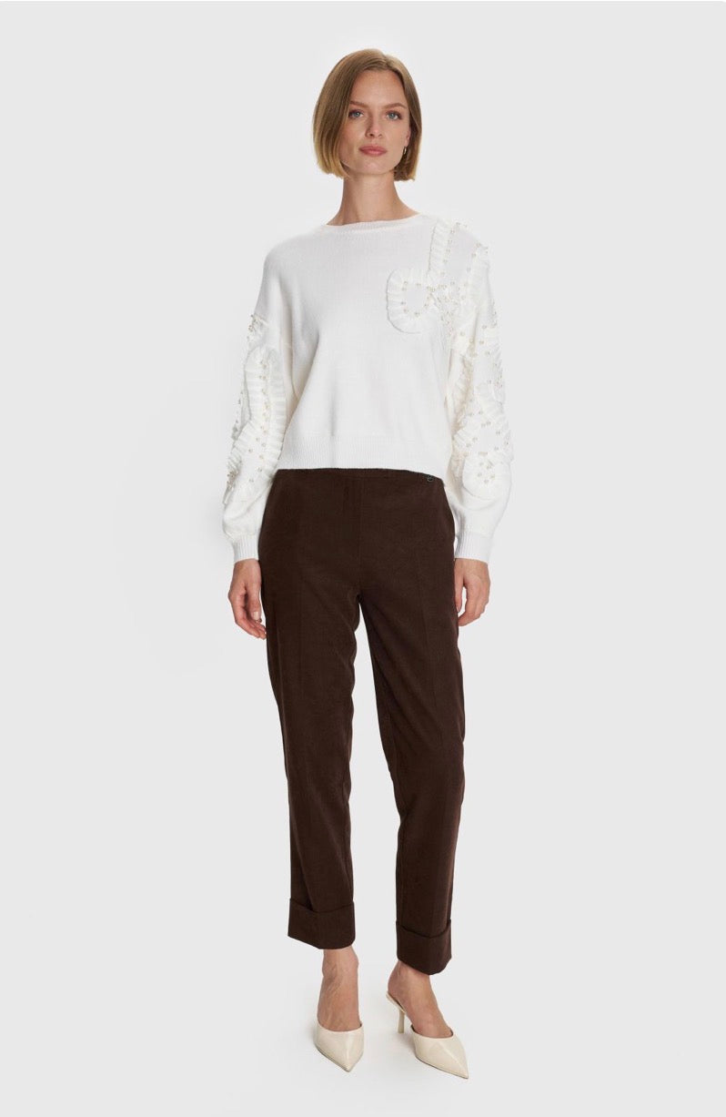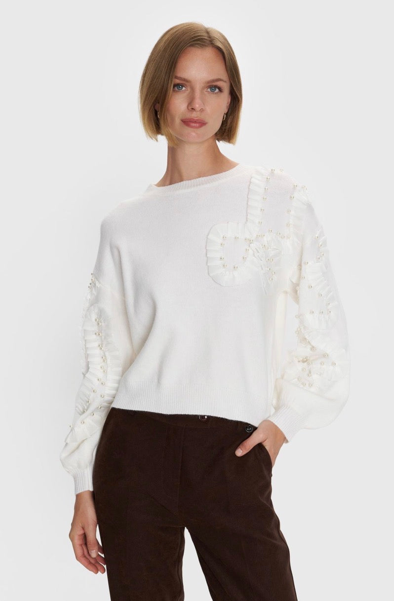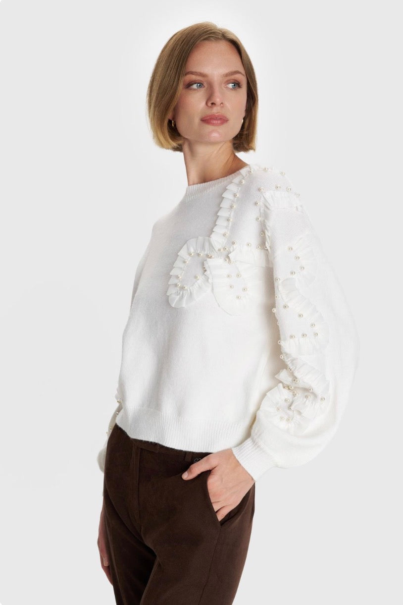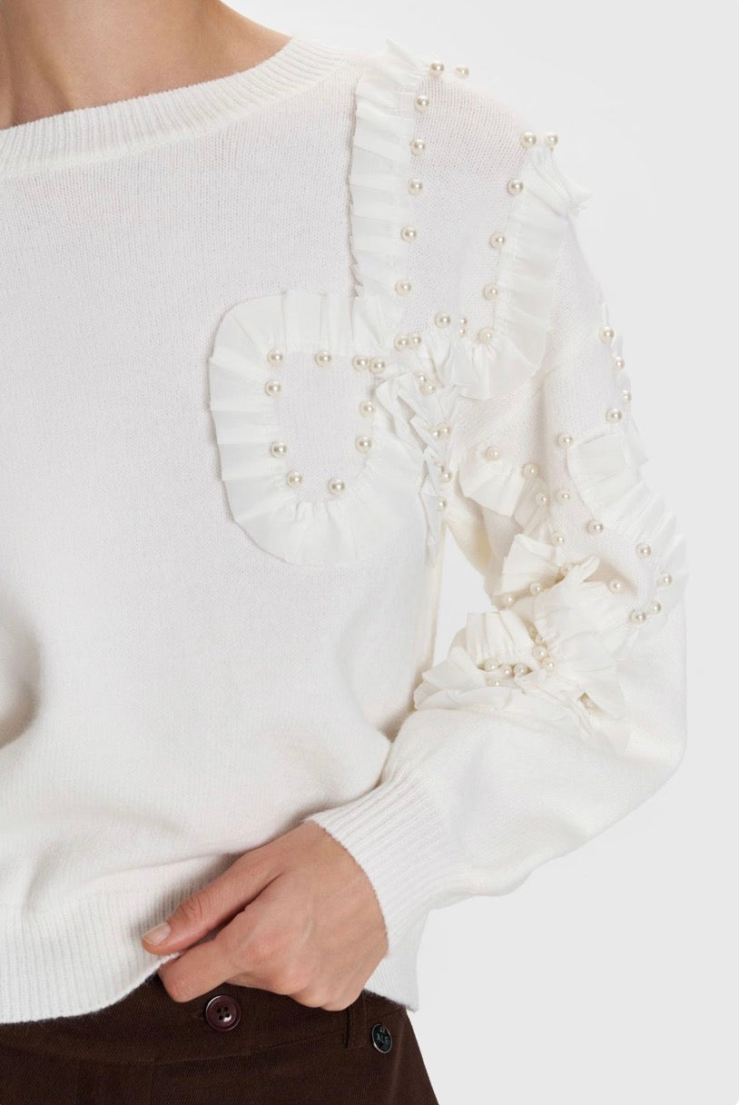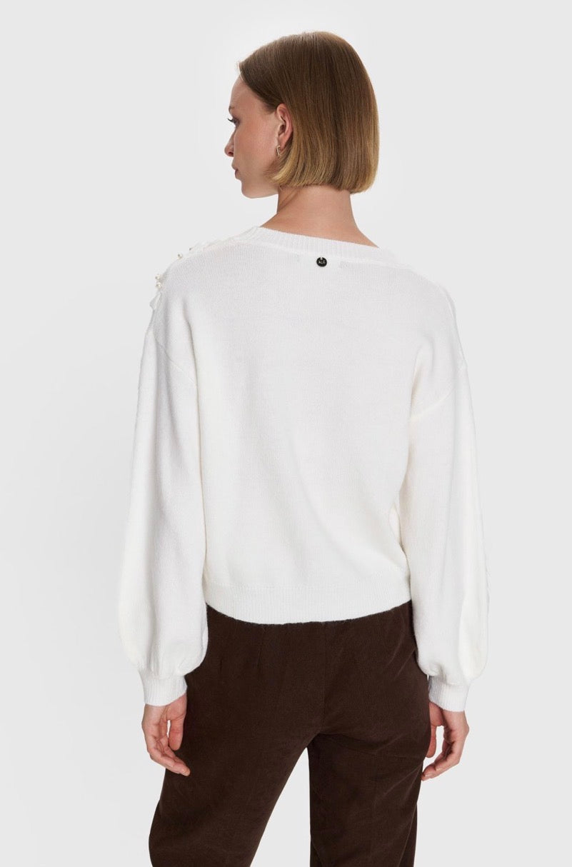 ALE - Pulover e bardhe e thurur me perla dekorative.