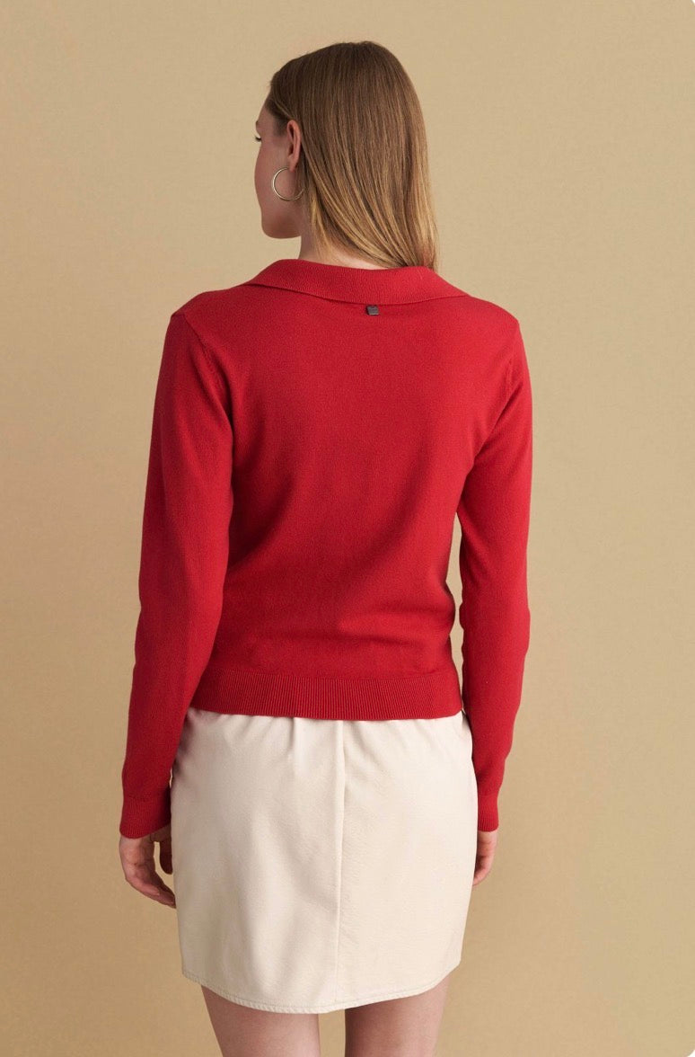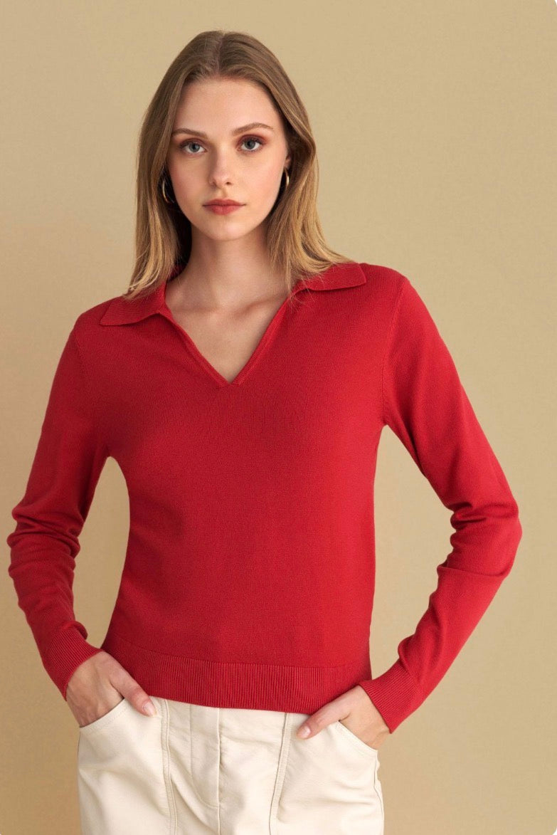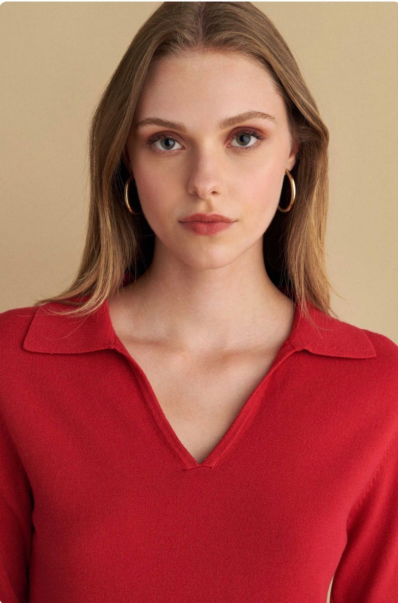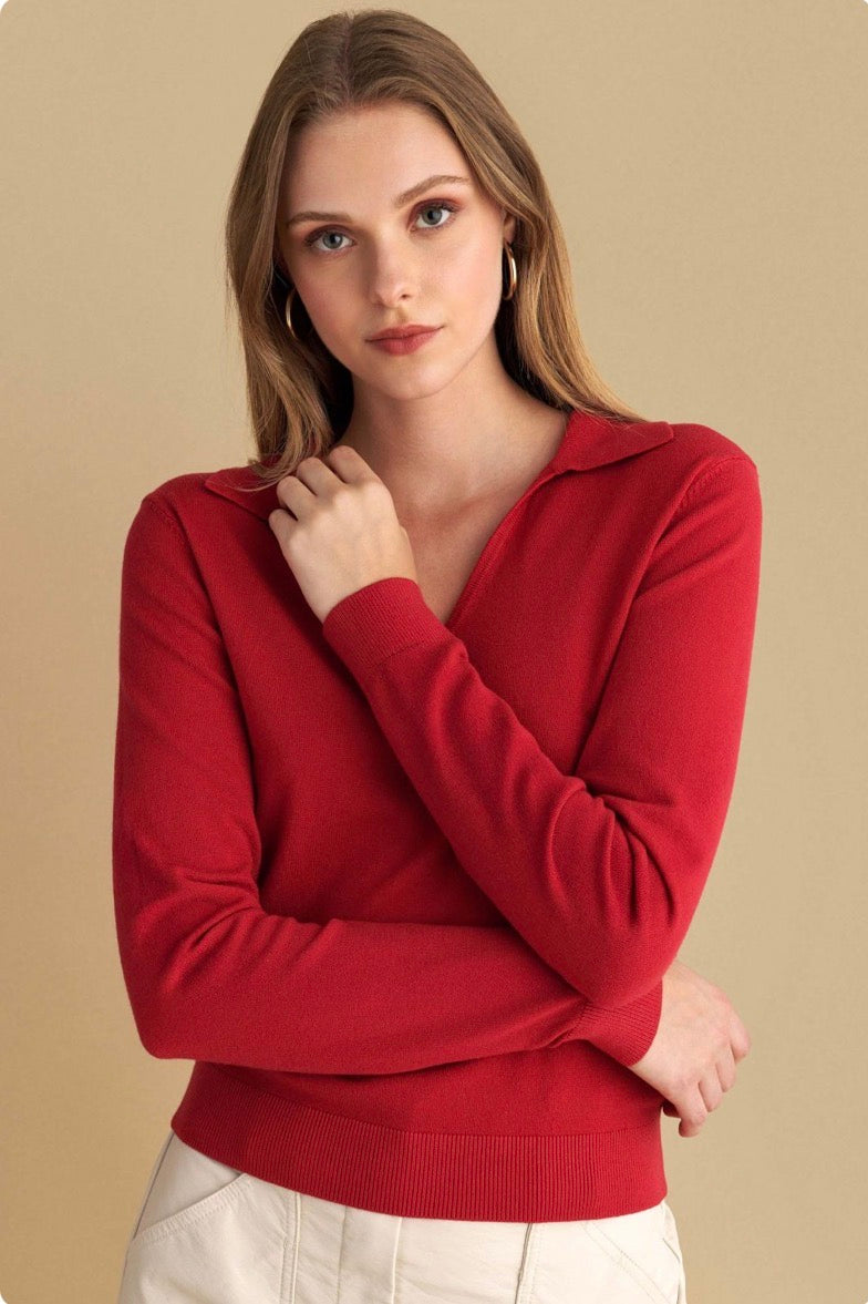 attrattivo - Bluze vishnje ,bezhe ,blu, e zeze dhe e kuqe me jake V