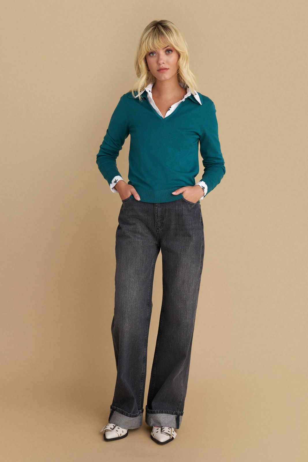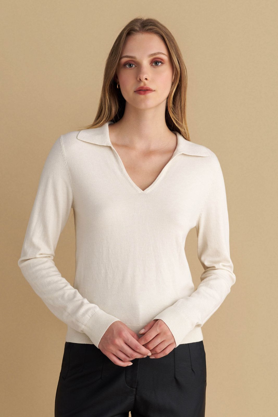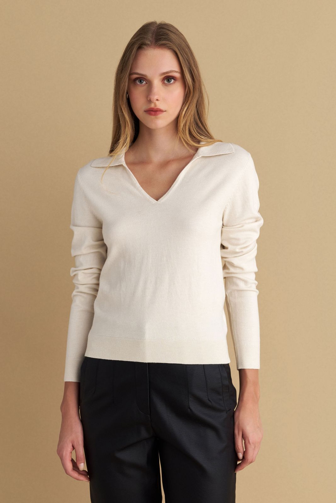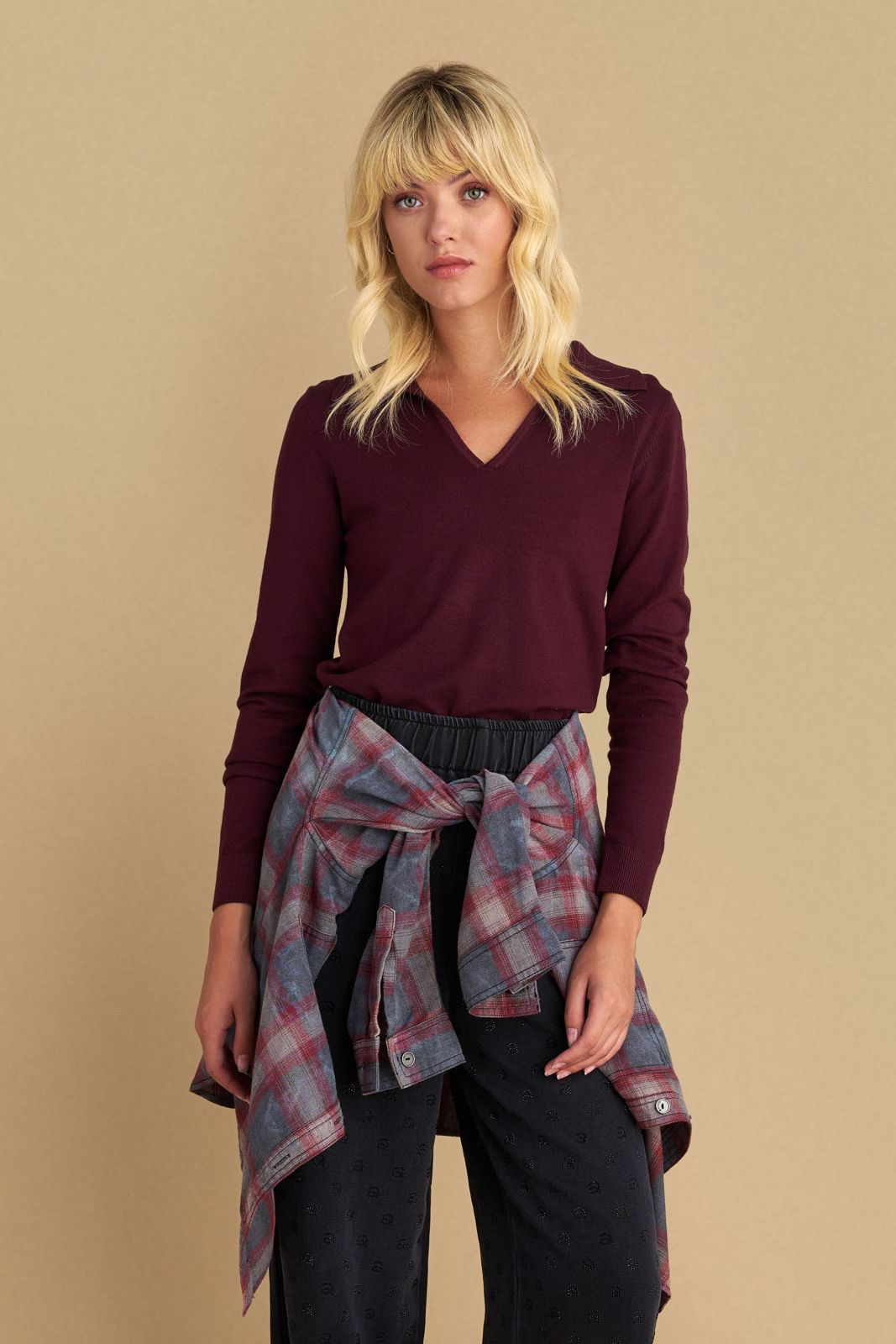 attrattivo - Bluze vishnje ,bezhe ,blu, e zeze dhe e kuqe me jake V