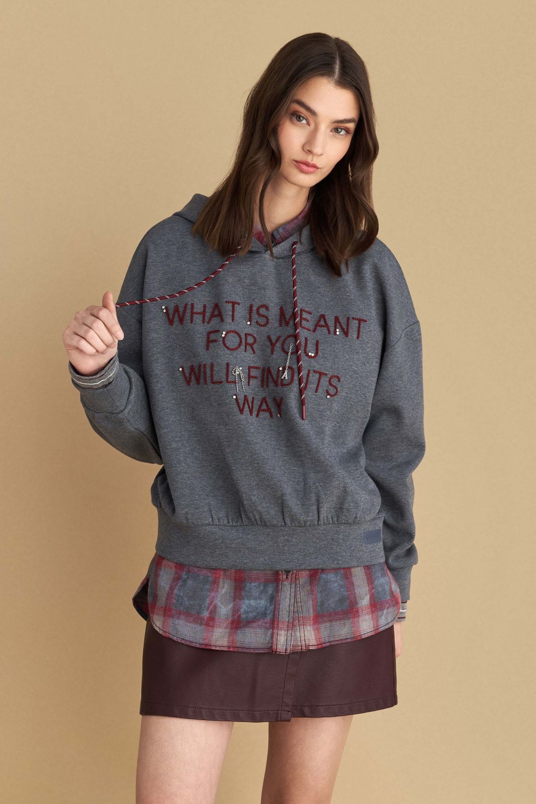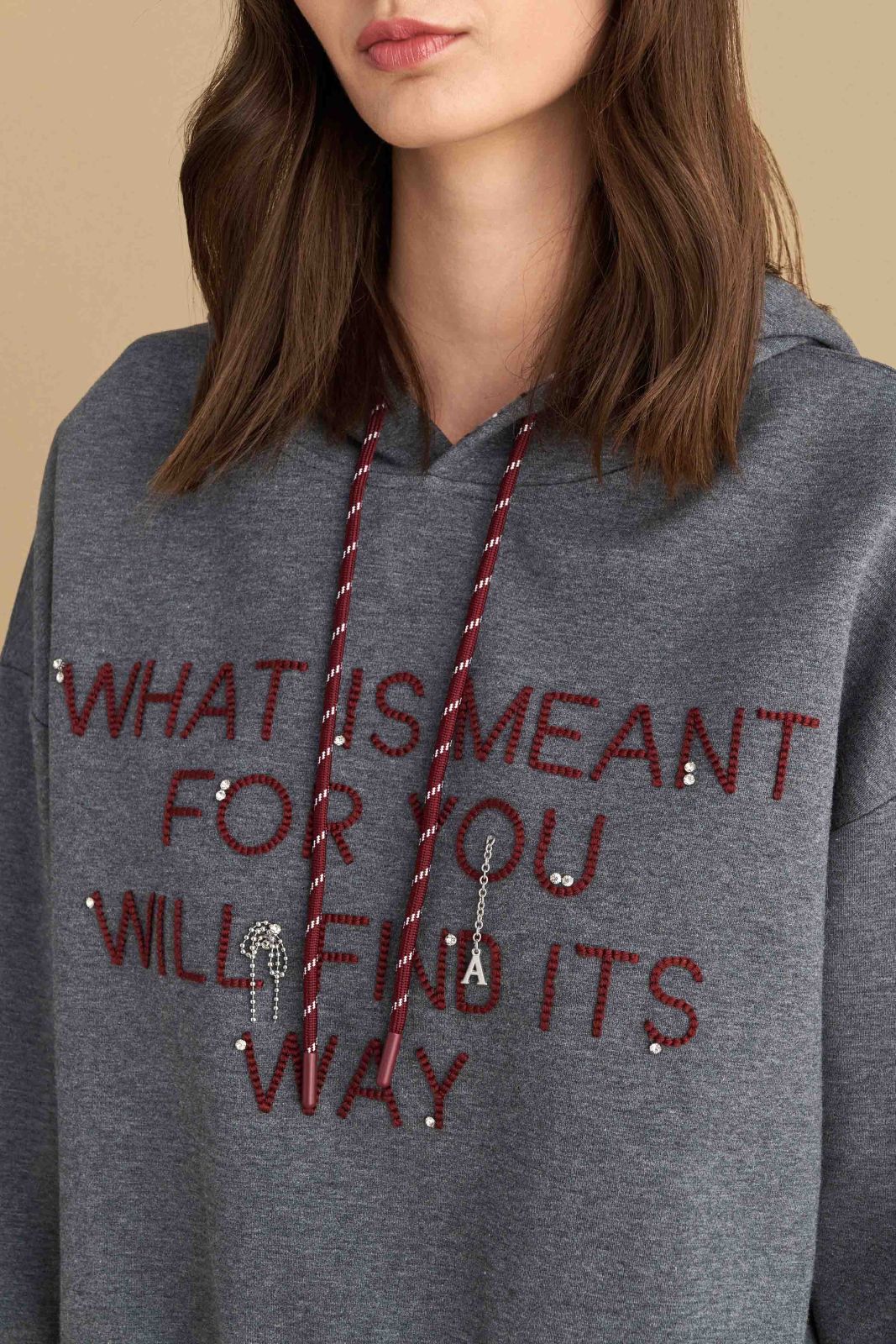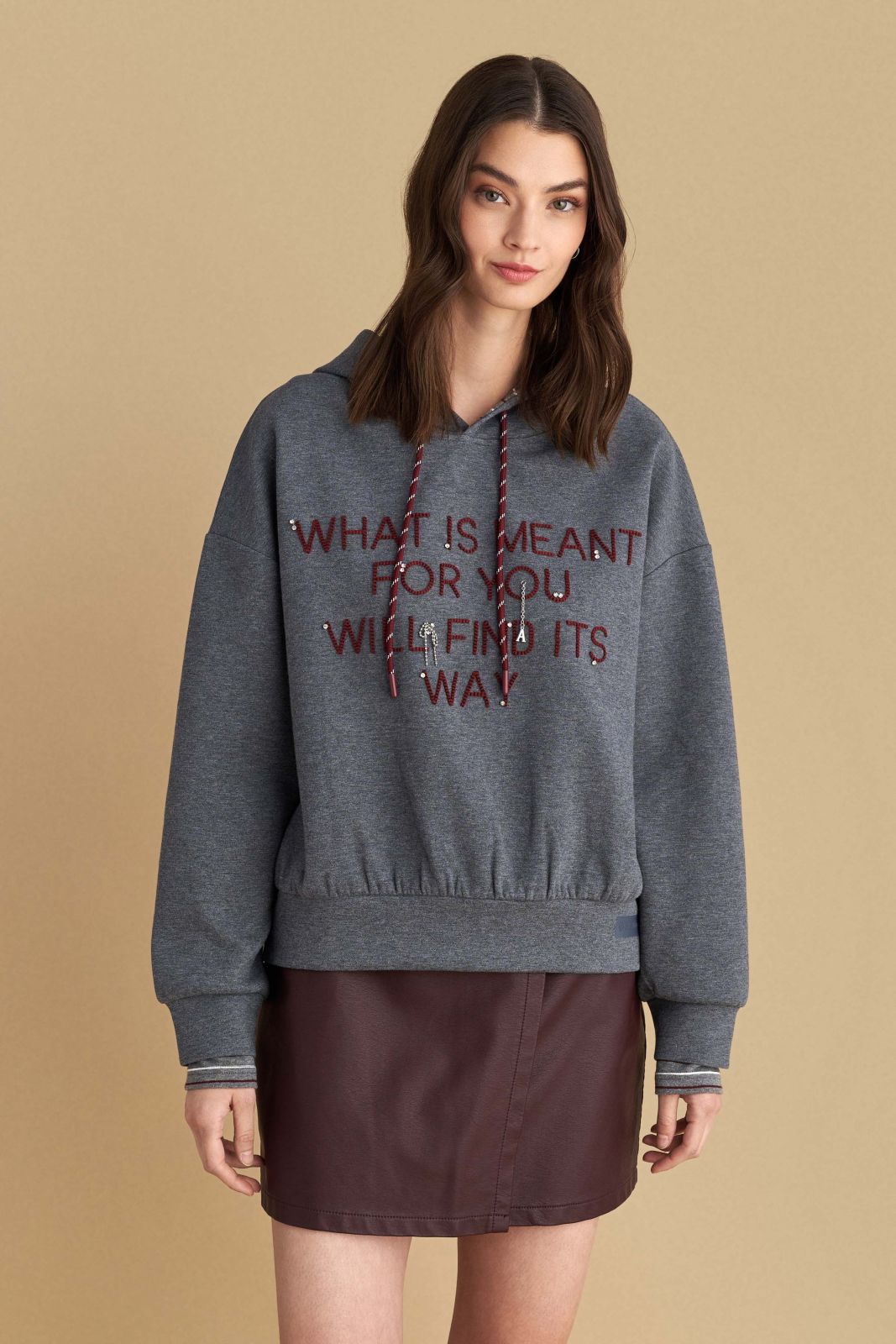 attrattivo - Bluze gri me kapuc dhe me shkrim