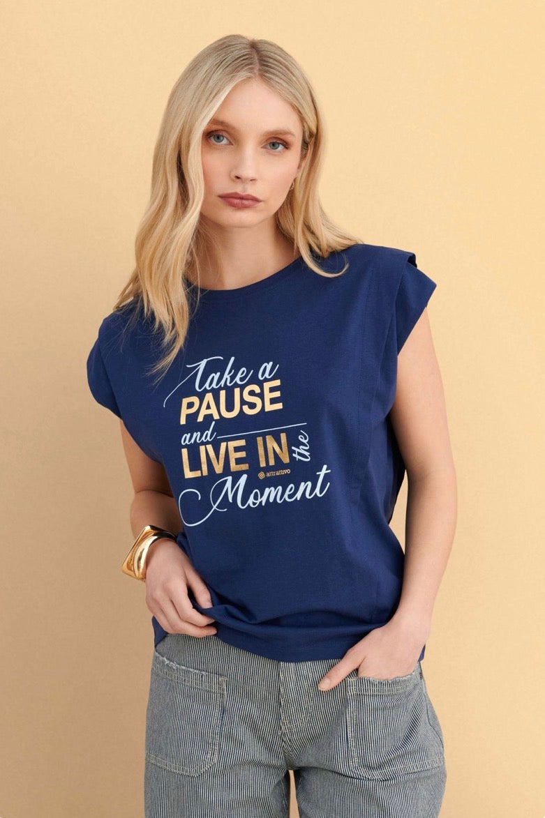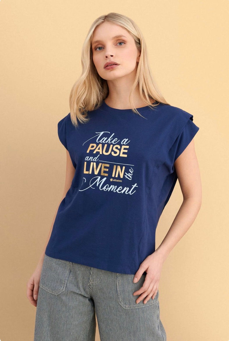 attrattivo - Bluze pambuku blu dhe e bardhe me printe