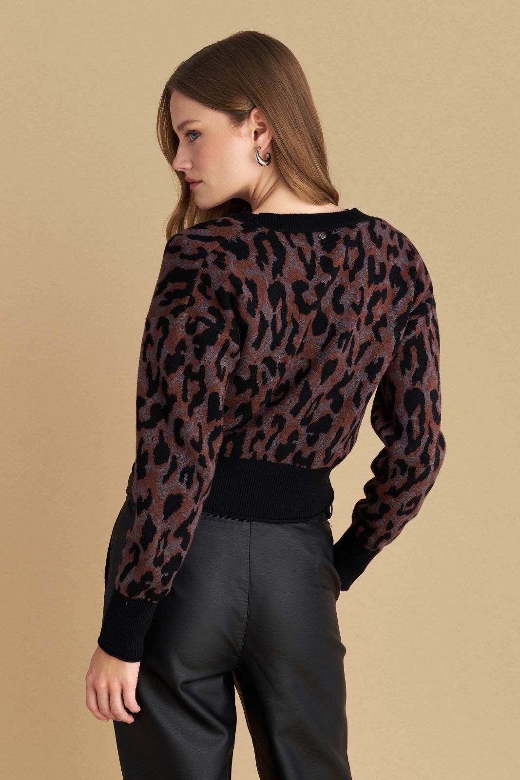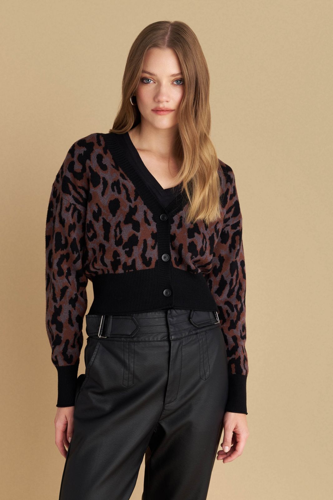 attrattivo - Cardigan i shkurter shumengjyresh me printe leopardi