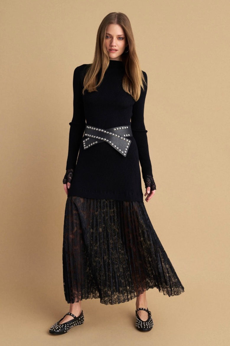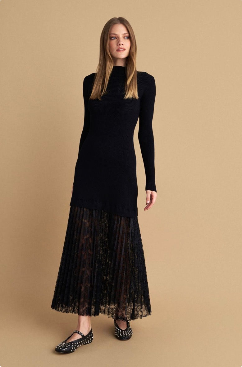 attrattivo - Fustan i zi me thurje dhe detaje tyli