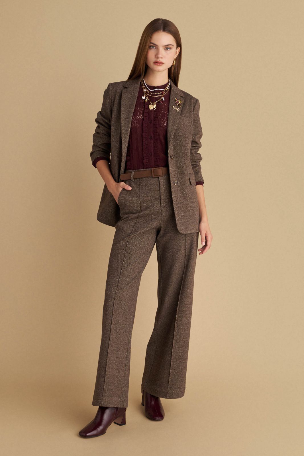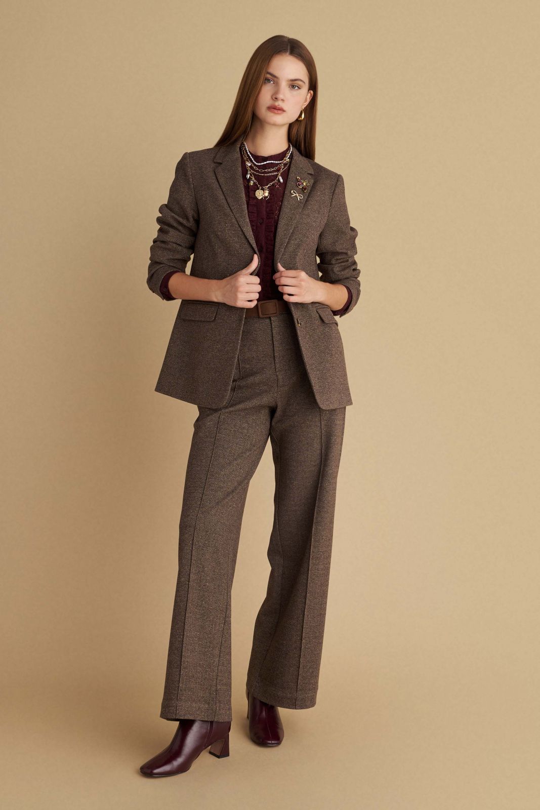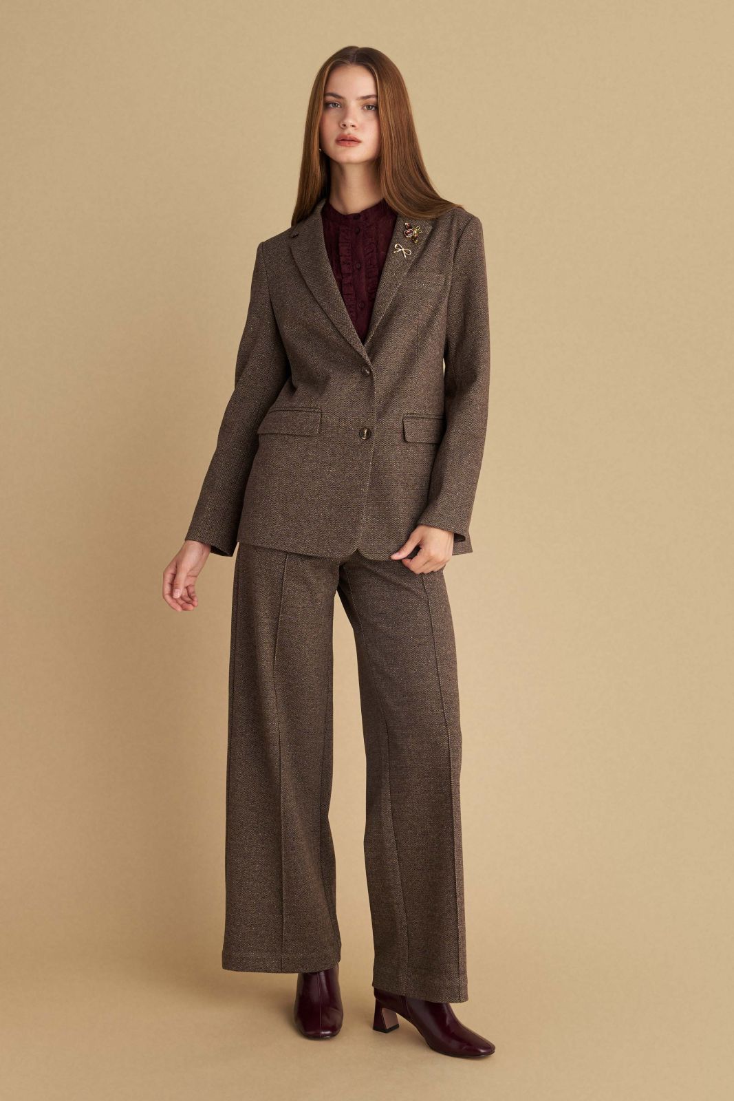 attrattivo - Kostum stofi ne ngjyre kafe xhakete dhe pantallona ne prerje te drejte