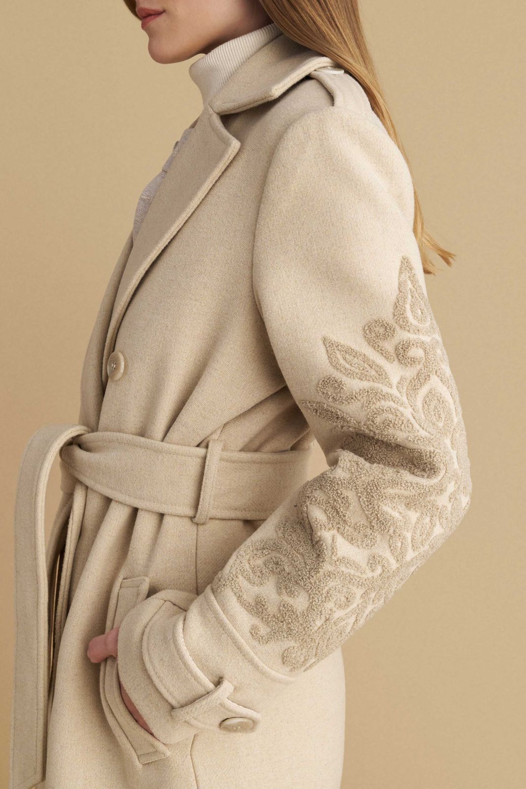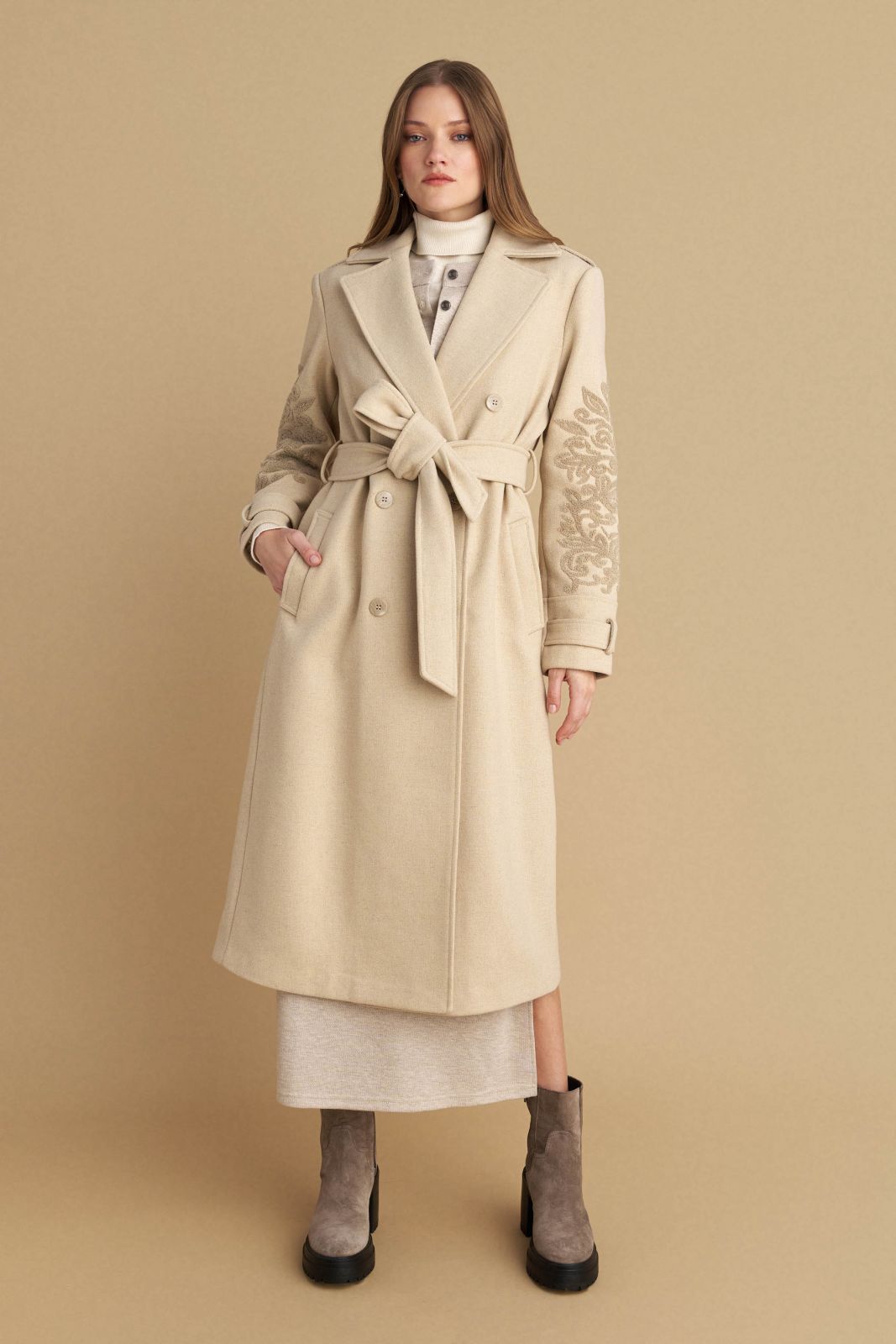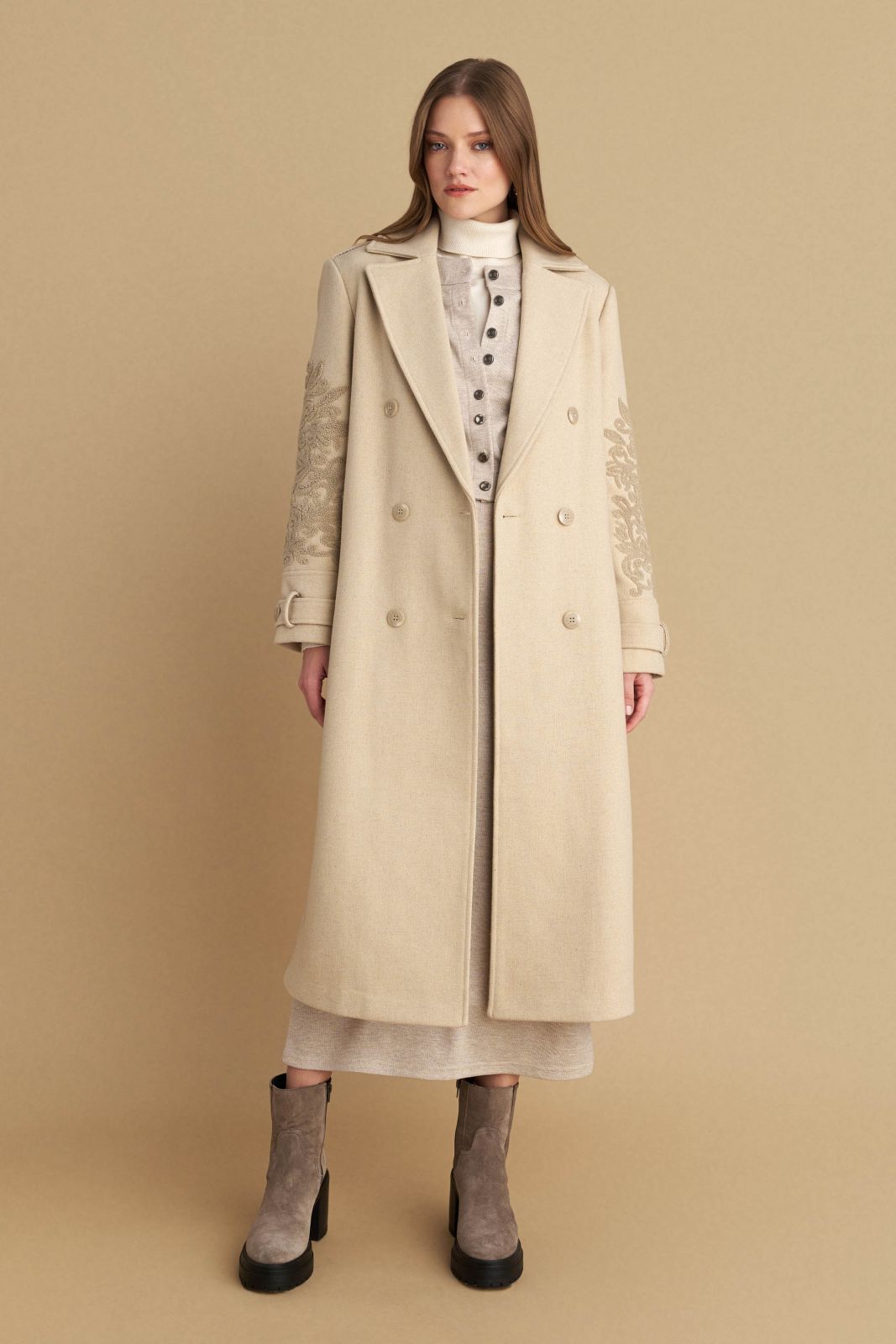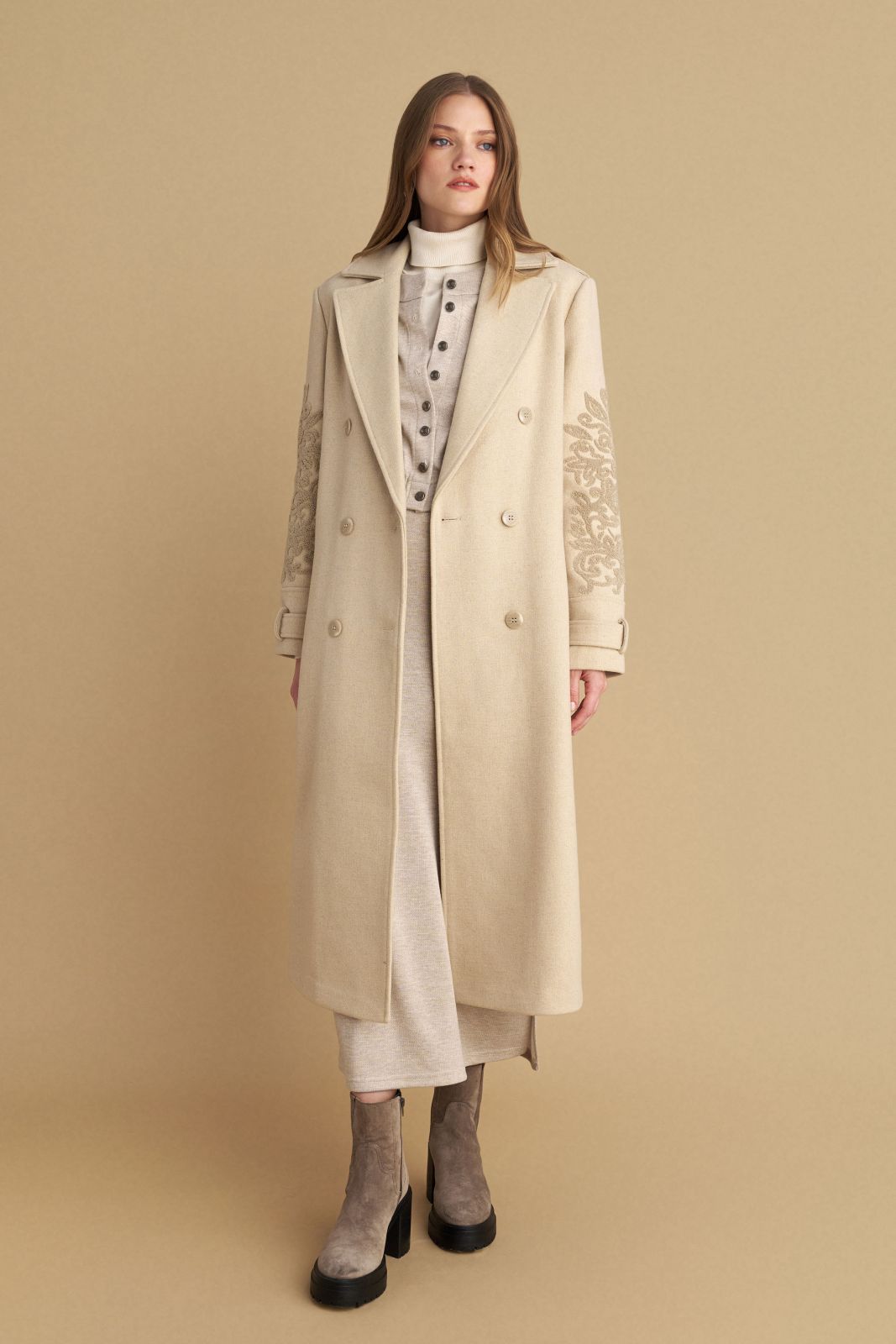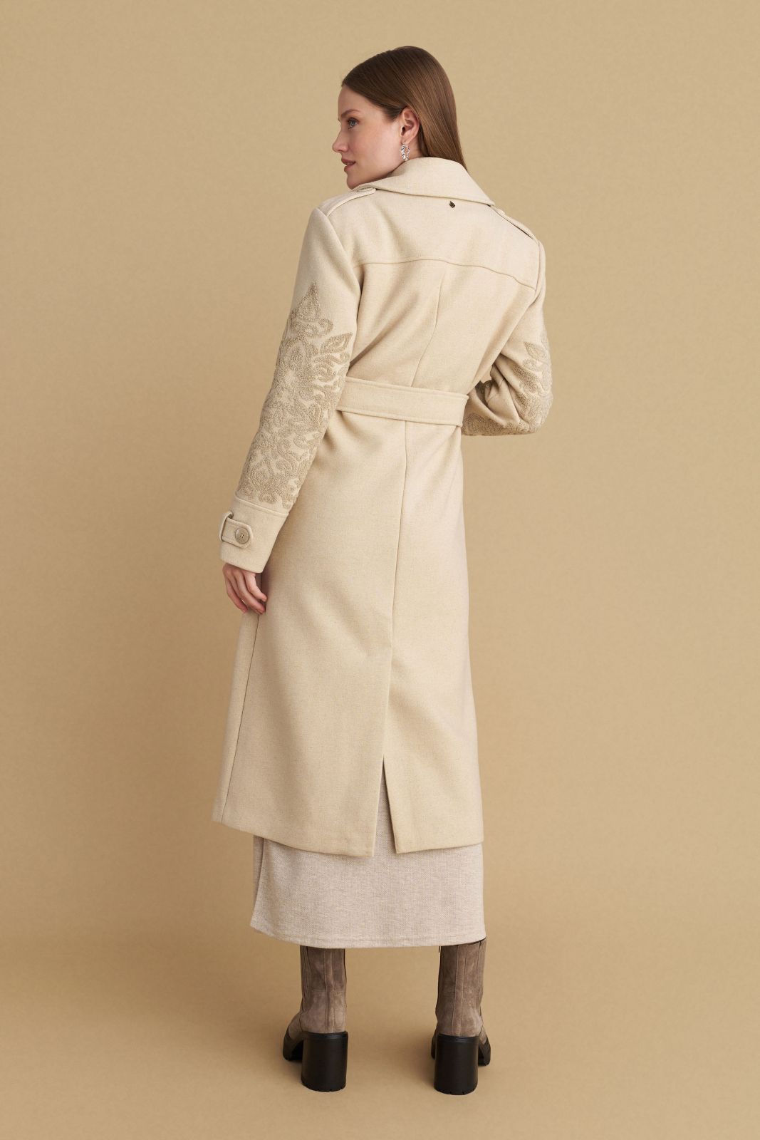 attrattivo - Pallto bezhe me qendisje dhe me rrip