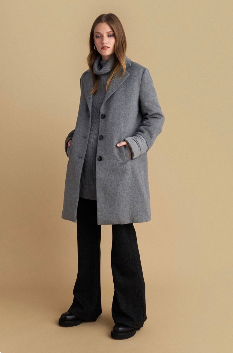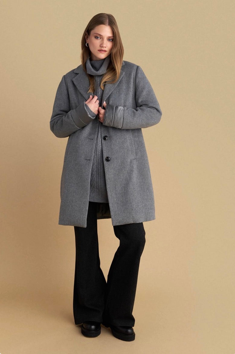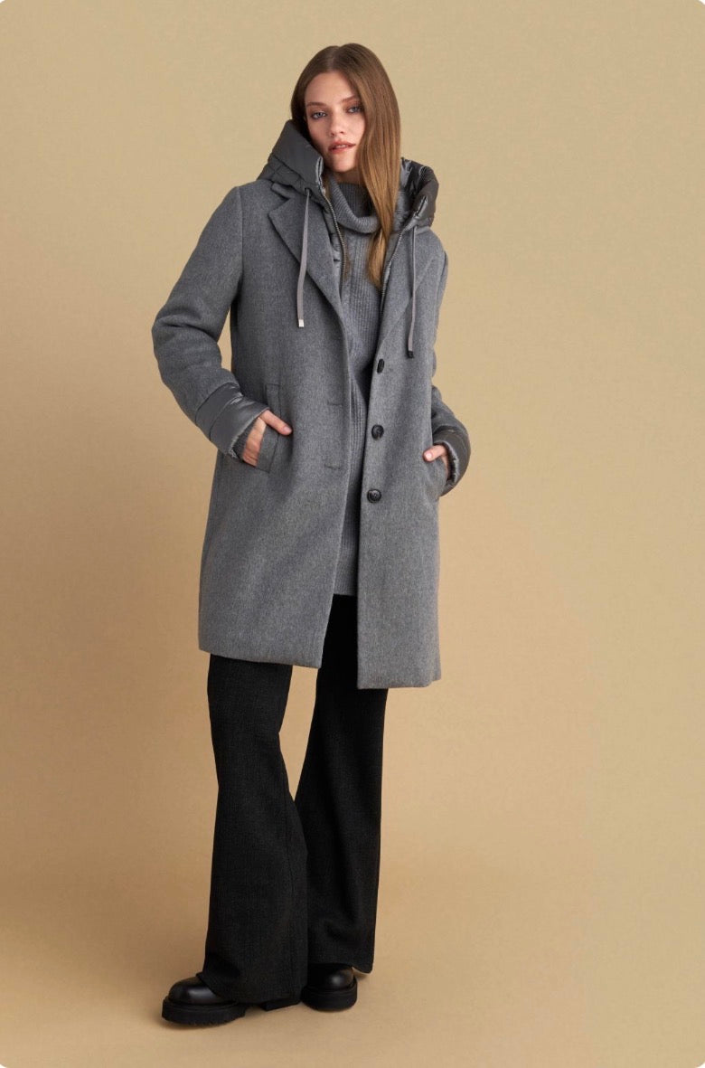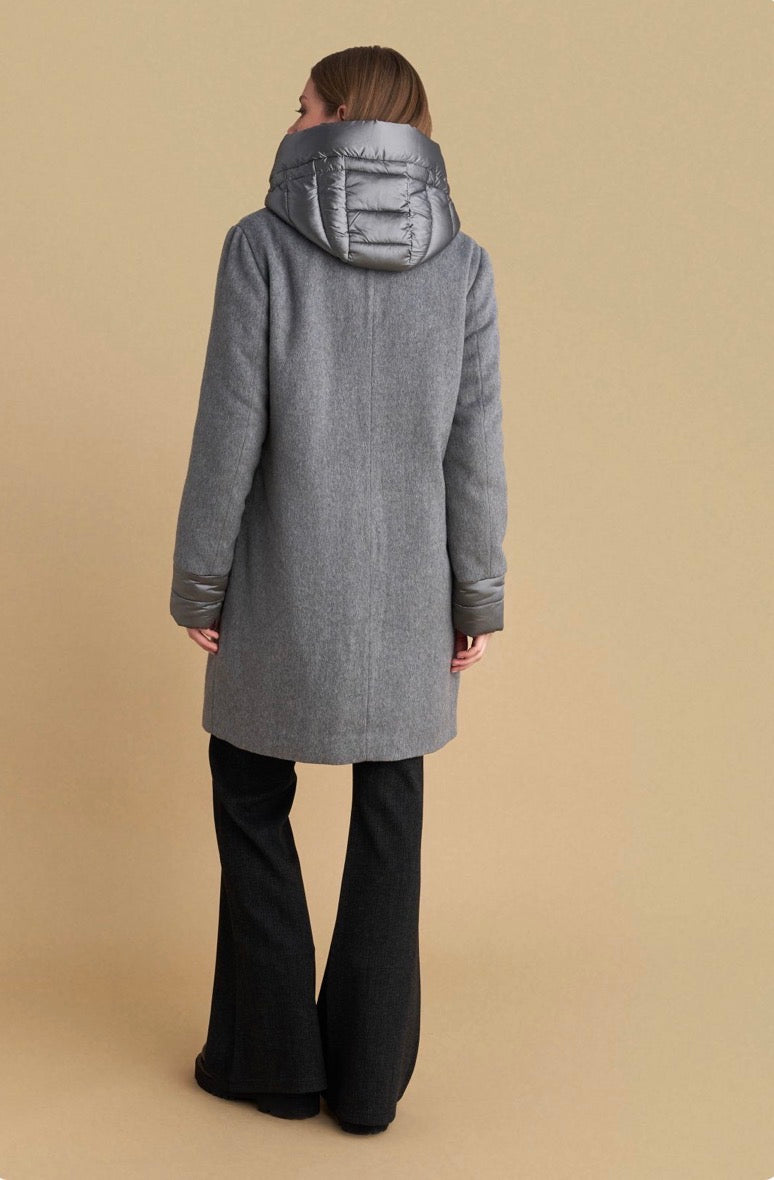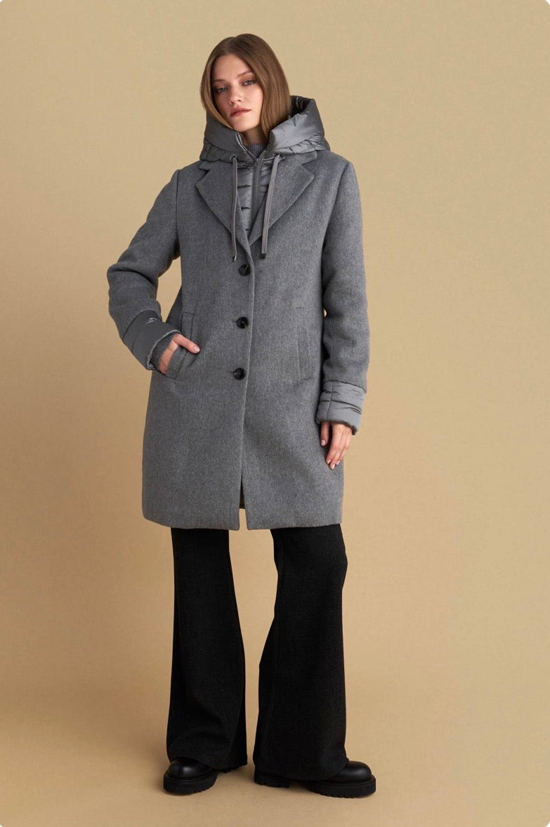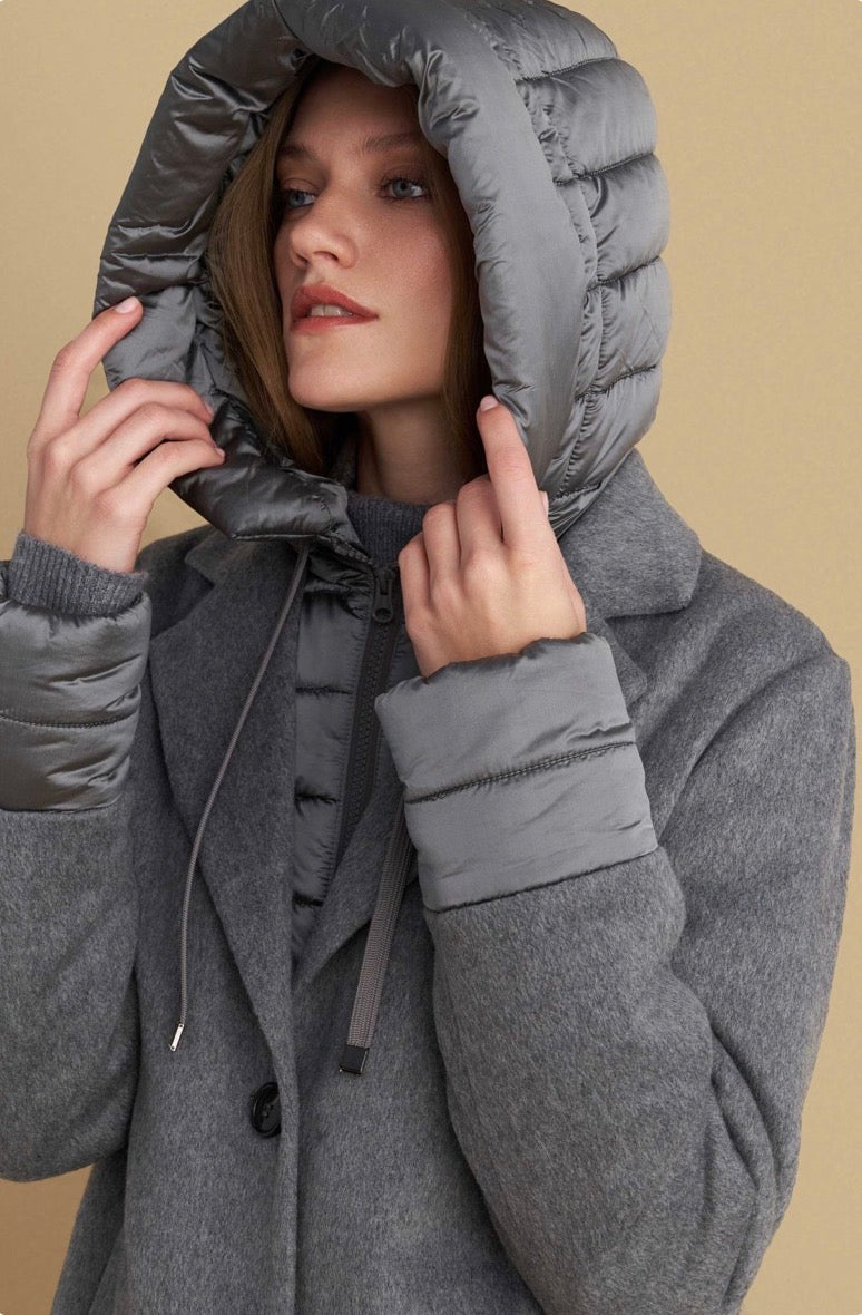 attrattivo - Pallto gri e shkurter me kapuc te shkeputshem