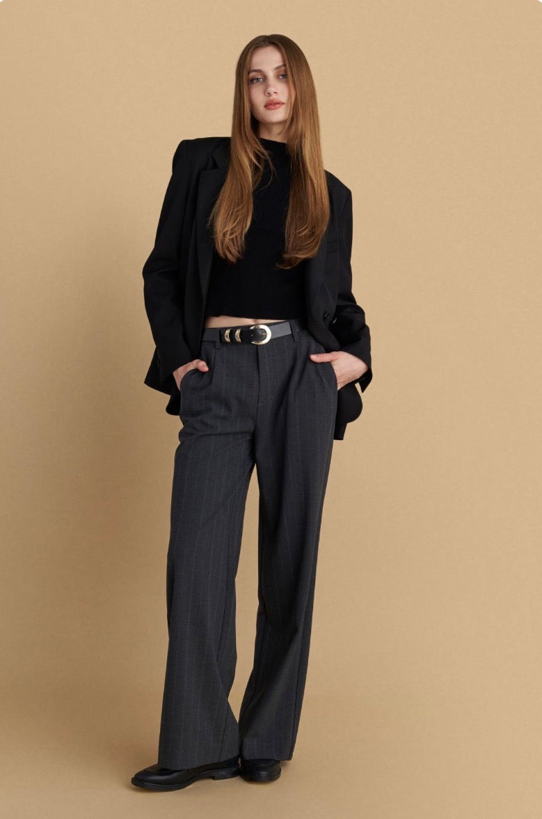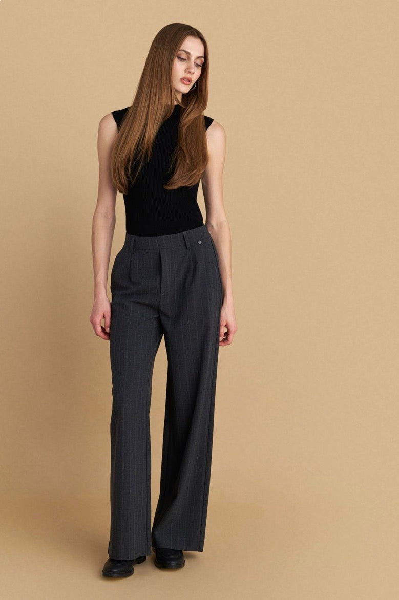 attrattivo - Pantallona gri me vija dhe me llastik ne bel