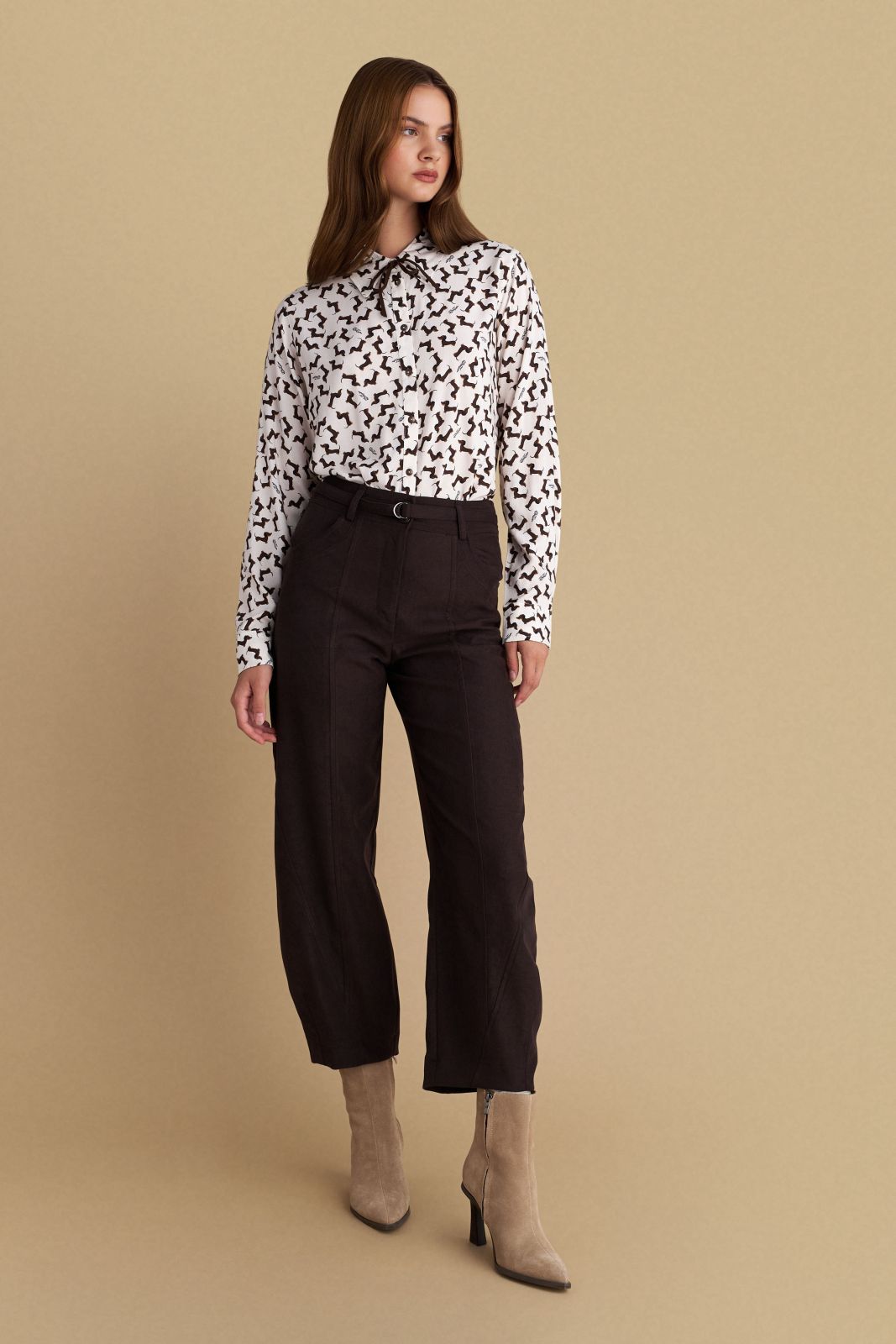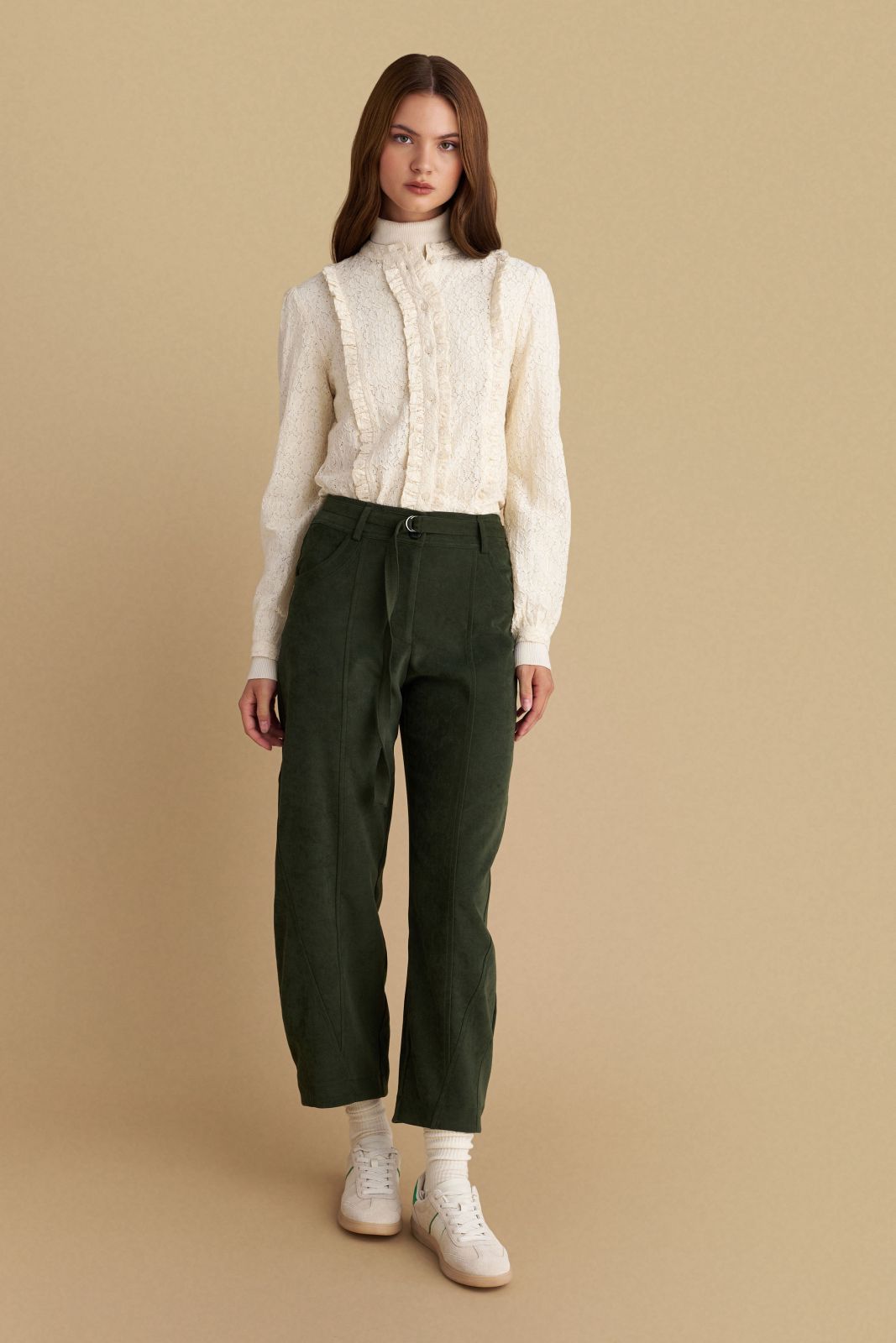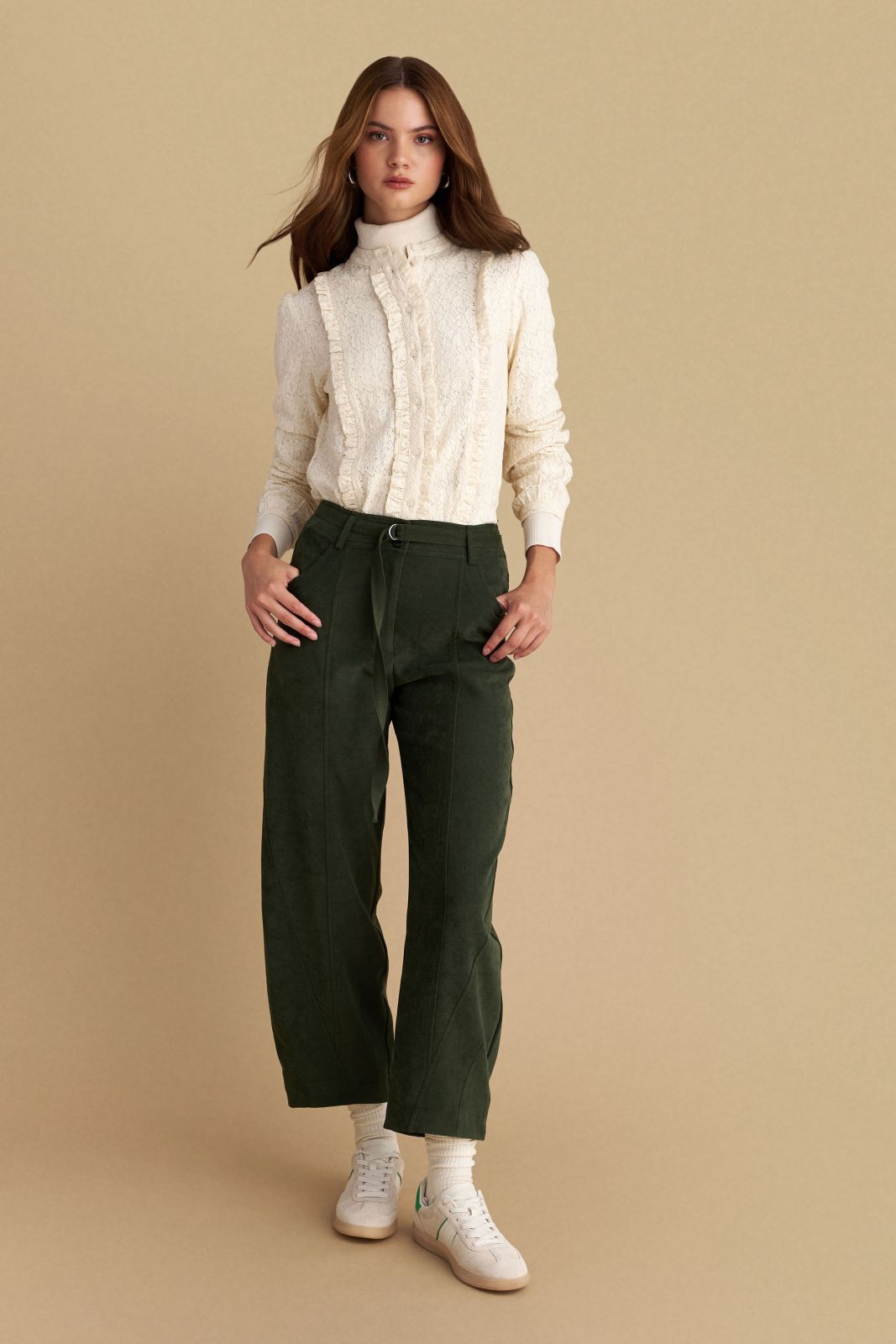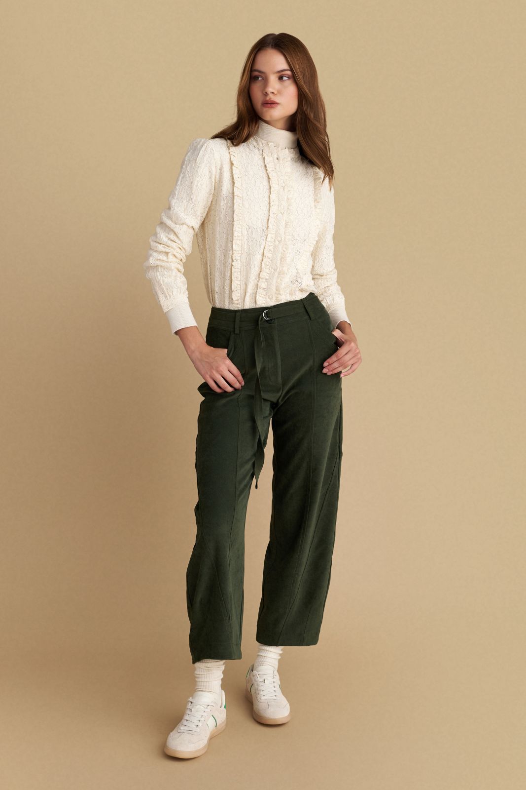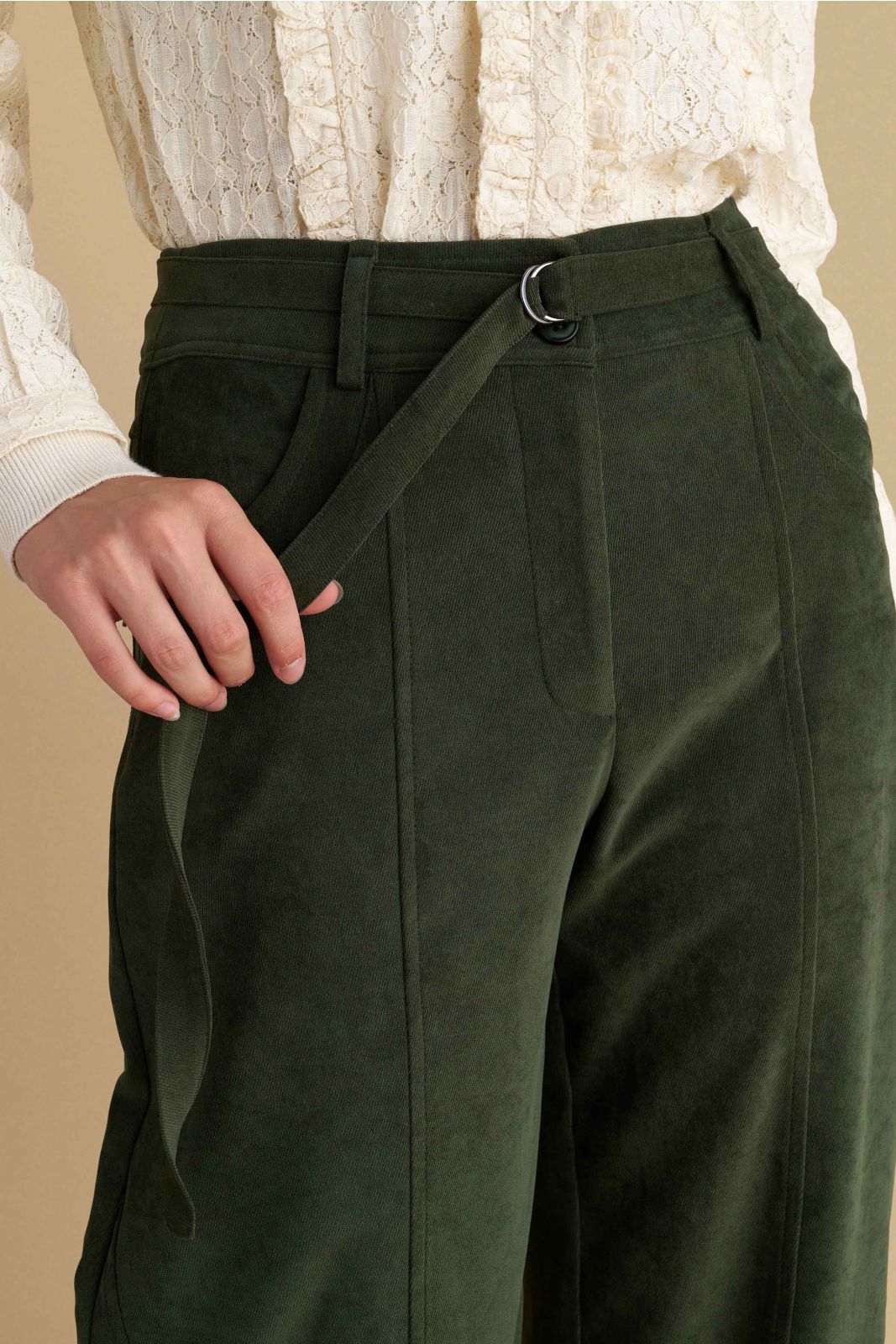 attrattivo - Pantallona jeshile dhe kafe me prerje te lirshme dhe rrip
