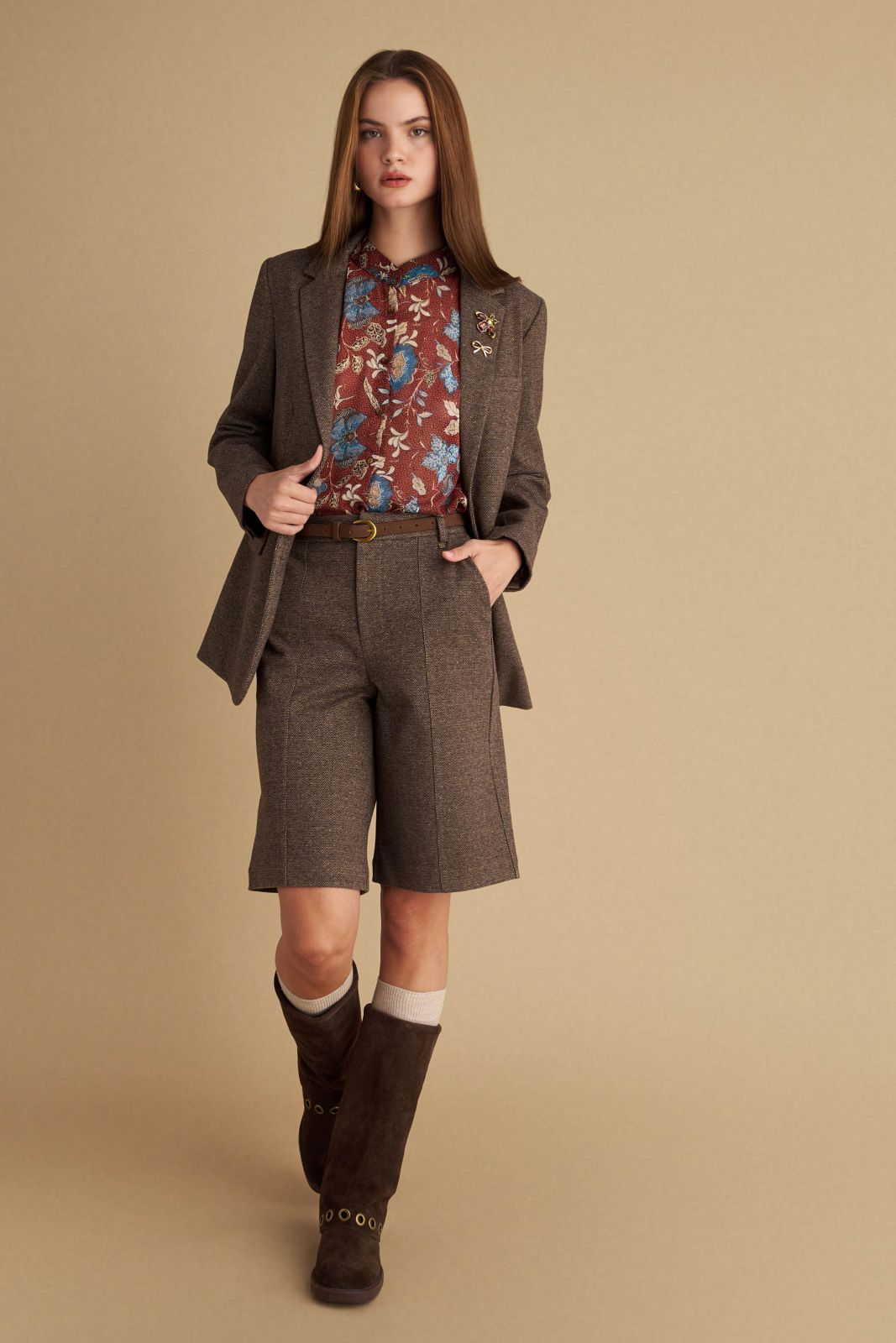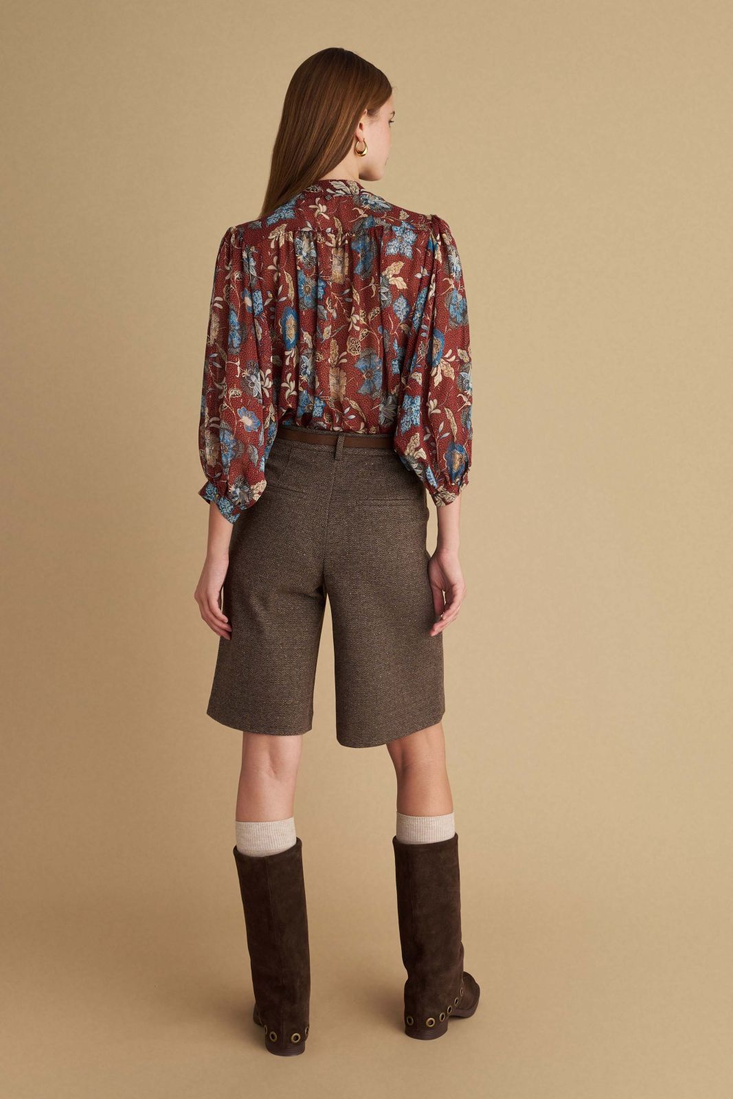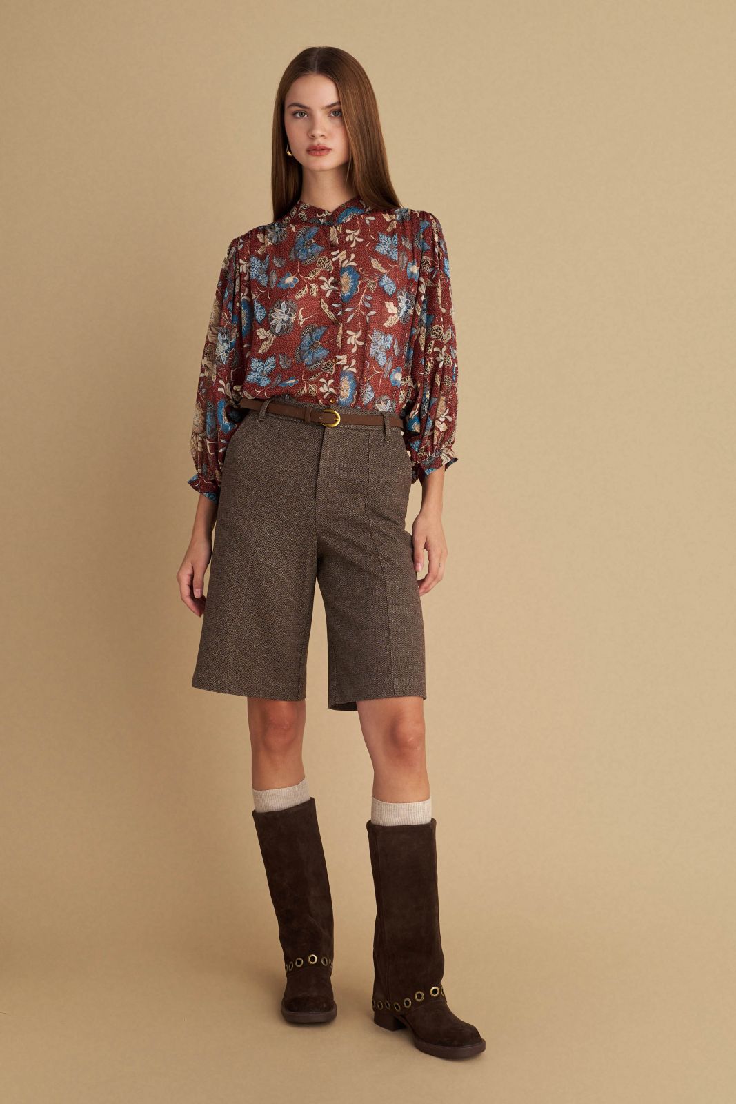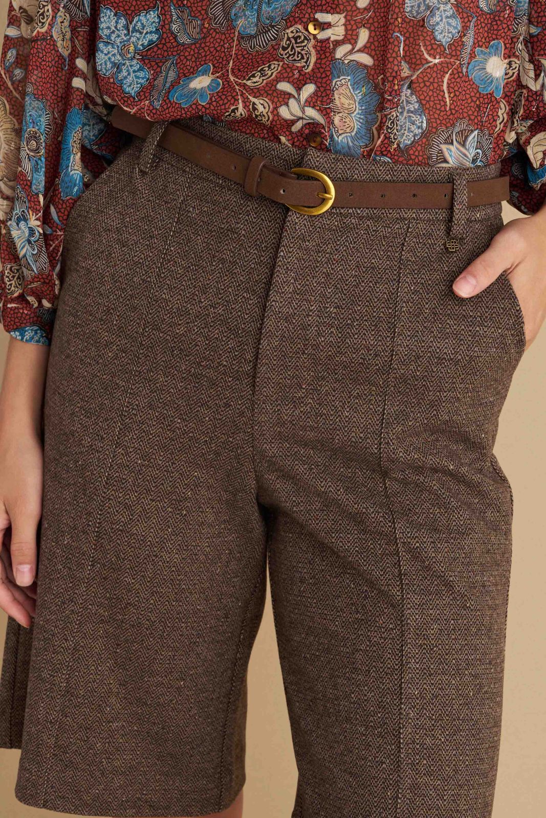 attrattivo - Pantallona kafe te shkurta me bel te larte dhe rrip