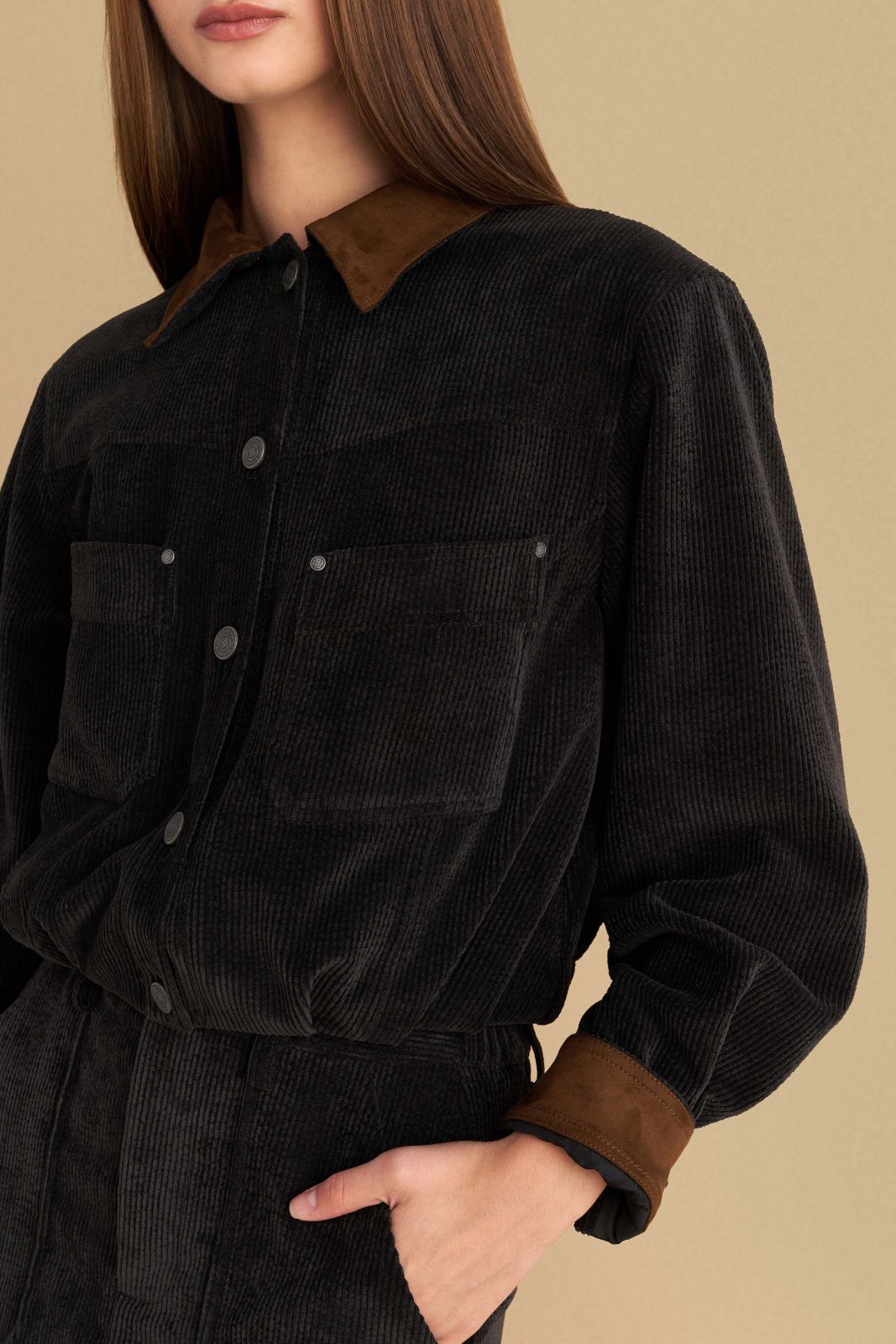 attrattivo - Xhakete kadife e shkurter gri me llastik