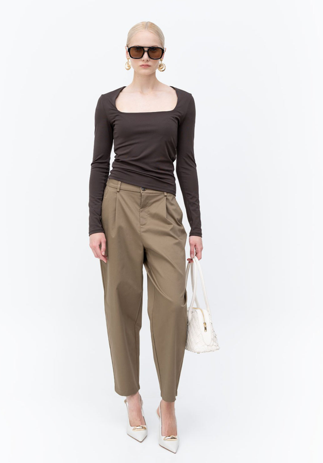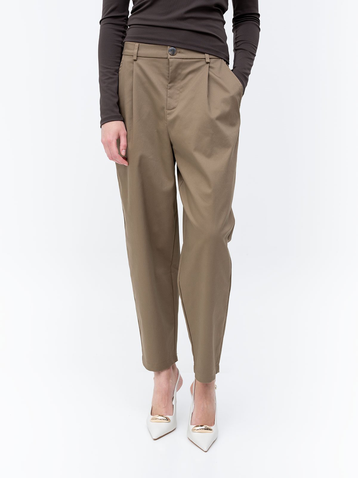 ONLY - Pantallona kafe me prerje te lirshme