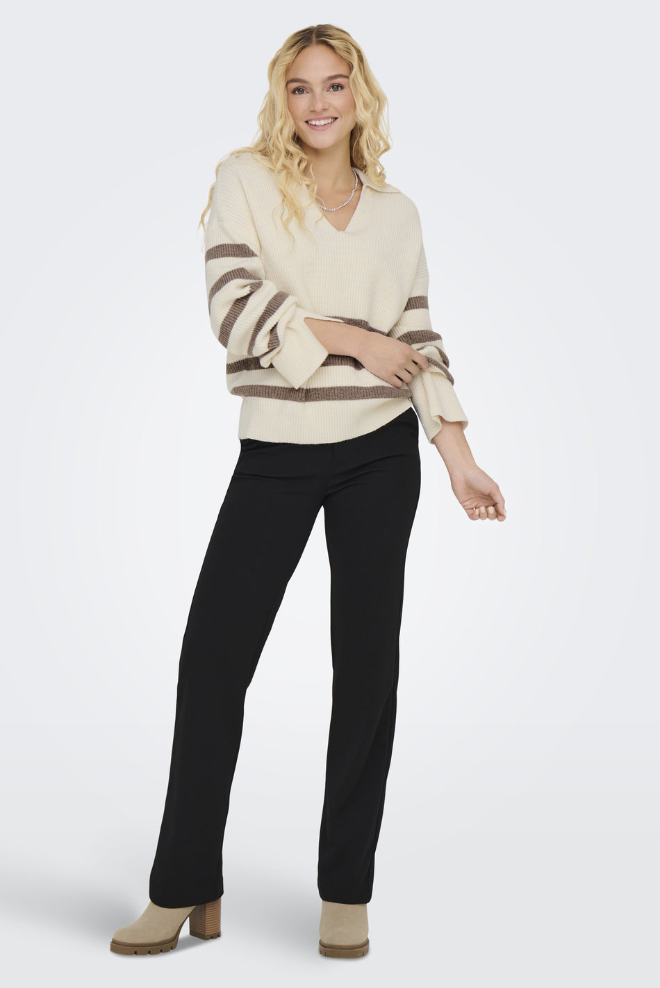 ONLY - Pulover-Bluze ngjyre pana me vija blu, kafe dhe bojqielli