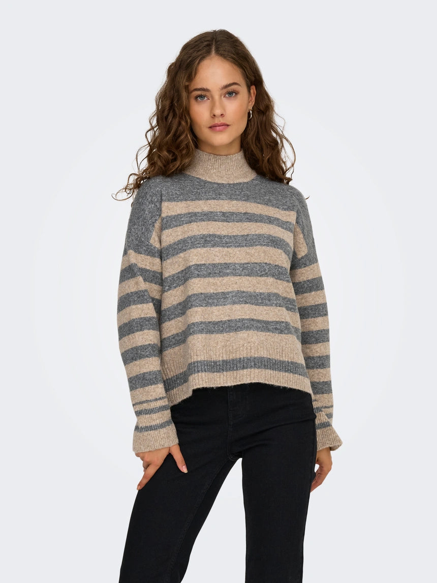 ONLY - Pulover me vija ne ngjyrat bezhe dhe gri