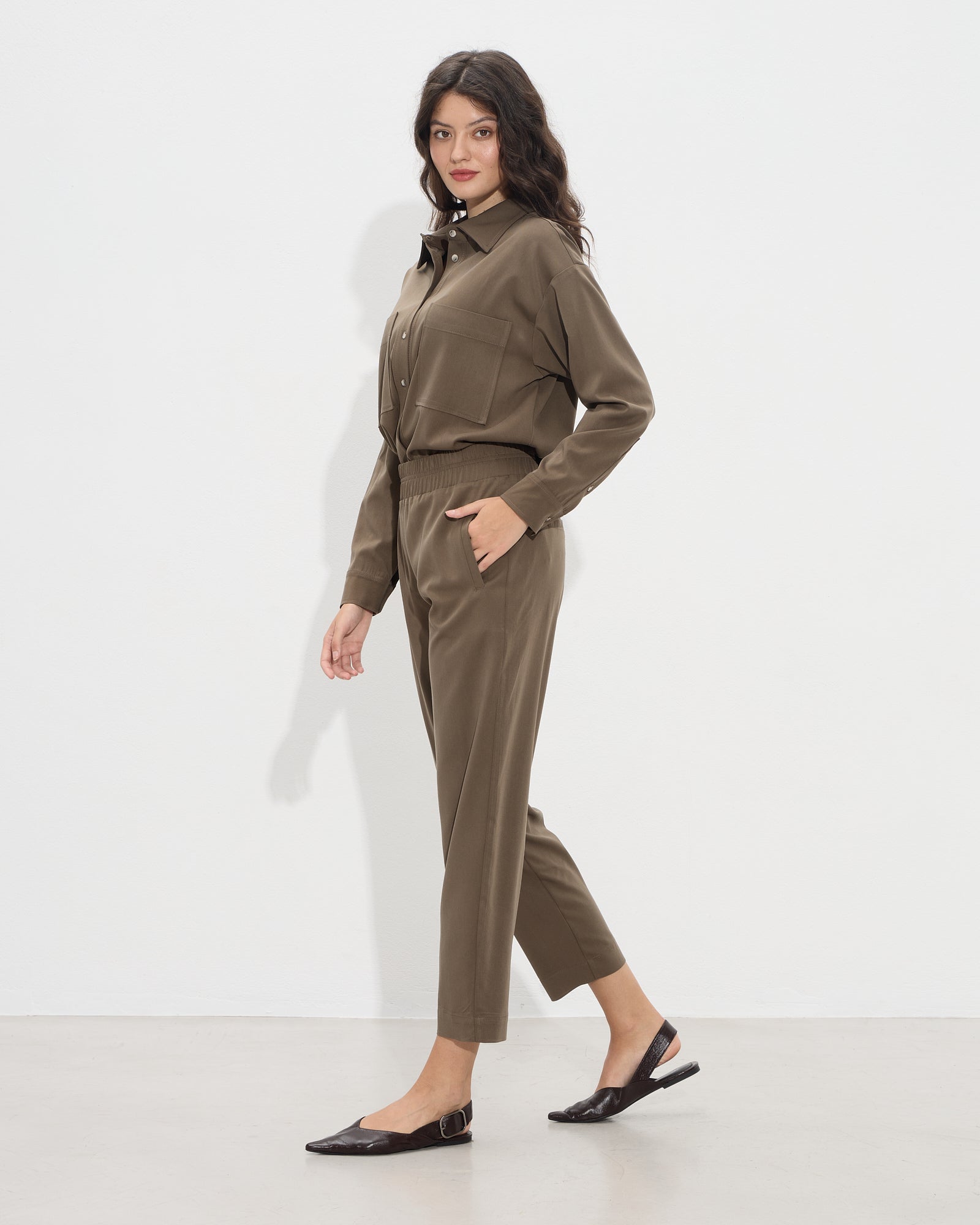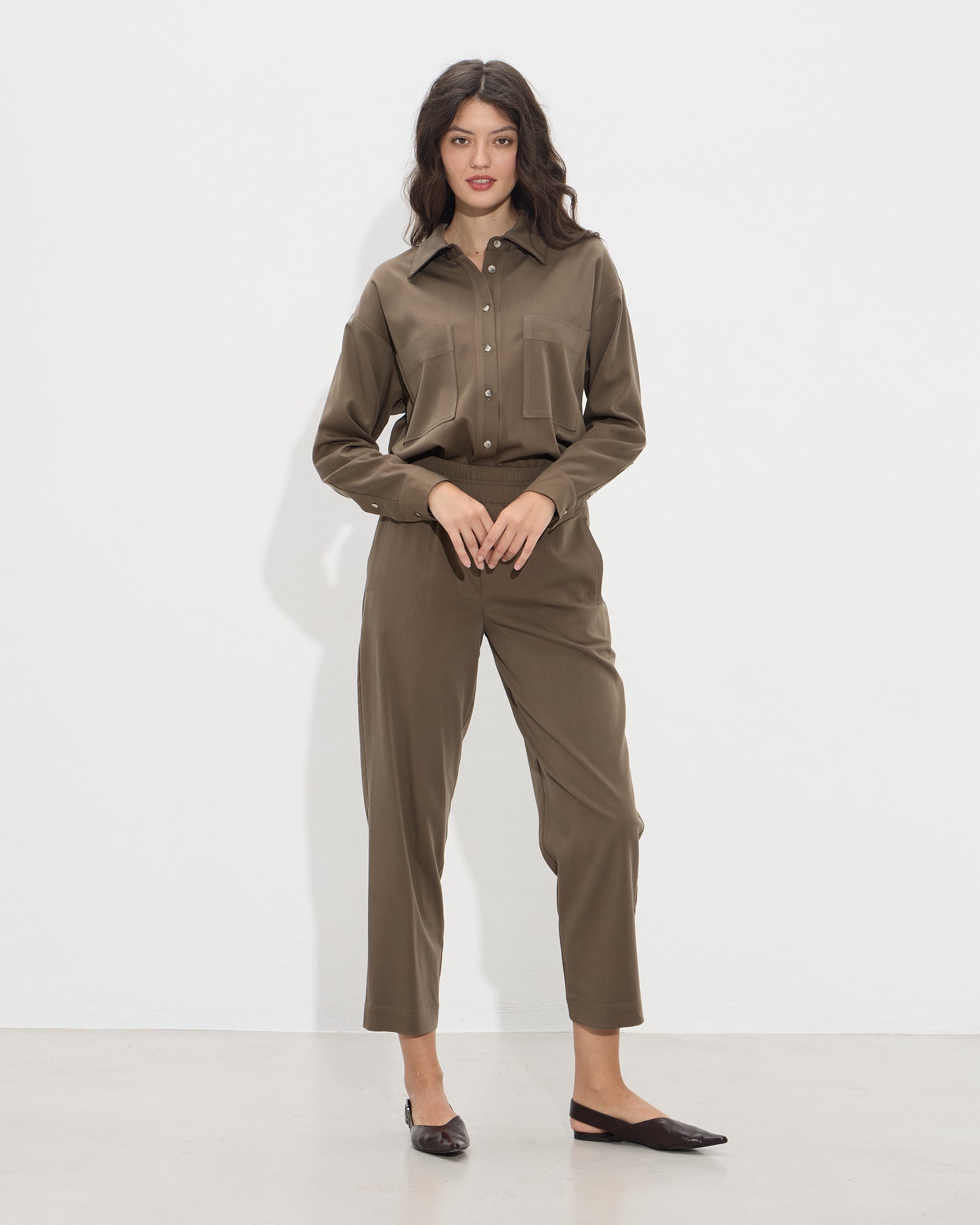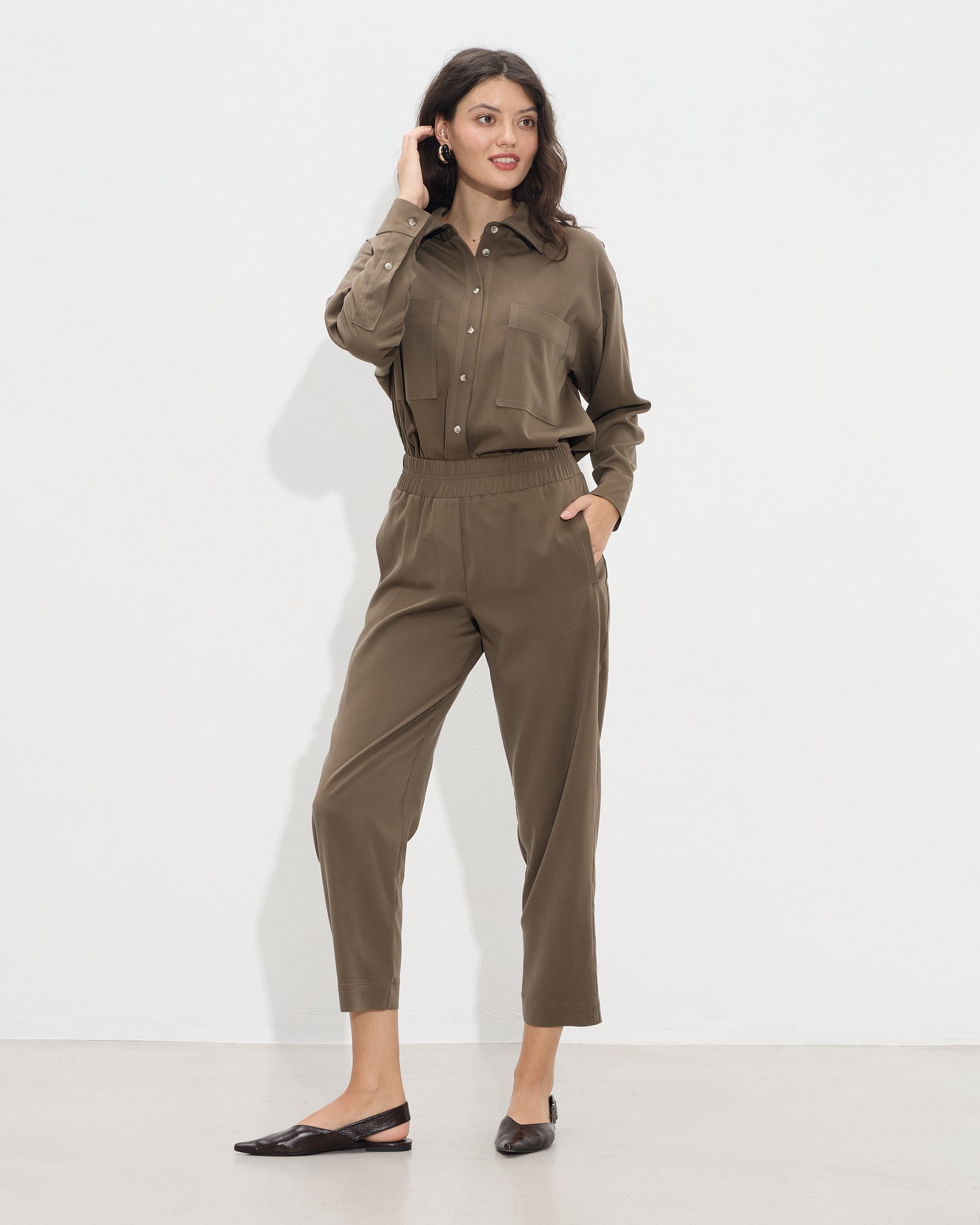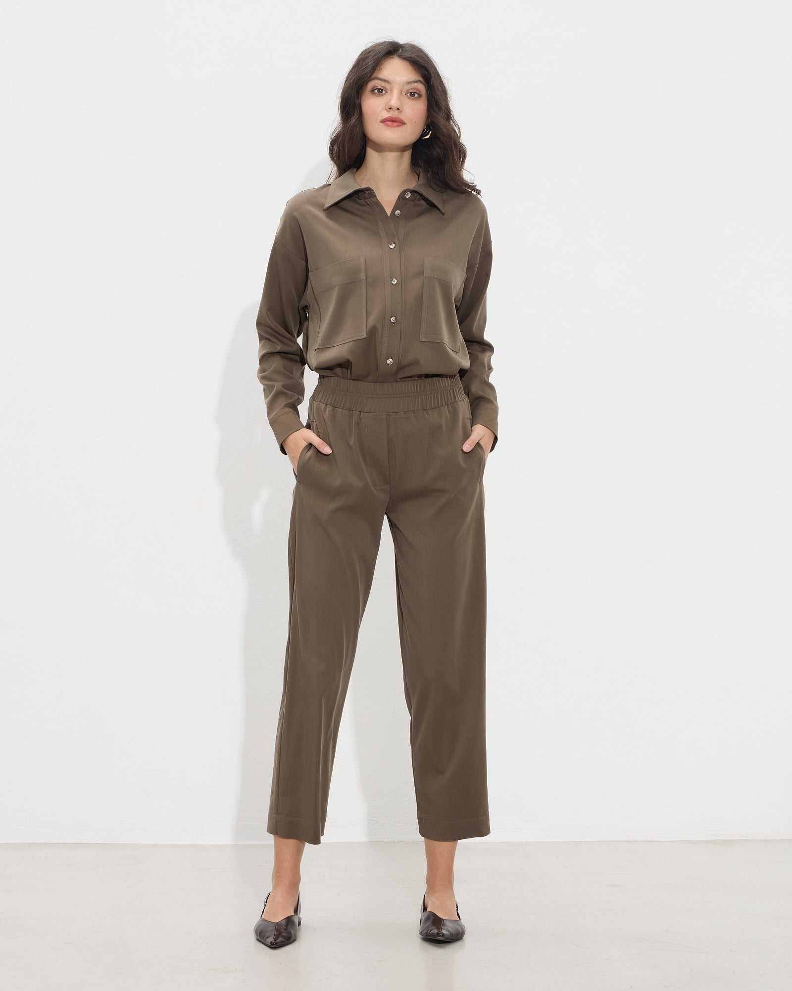 Passager - Pantallona jeshile dhe te zeza prerje e drejte me llastik ne bel