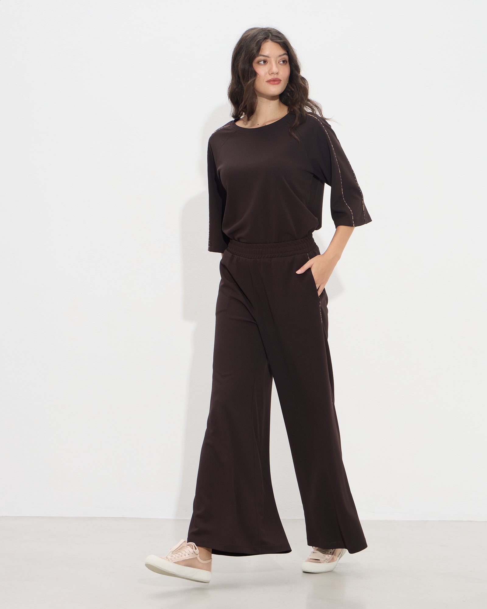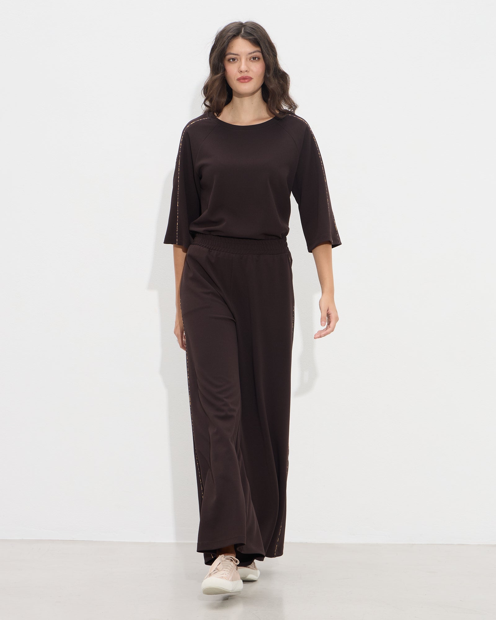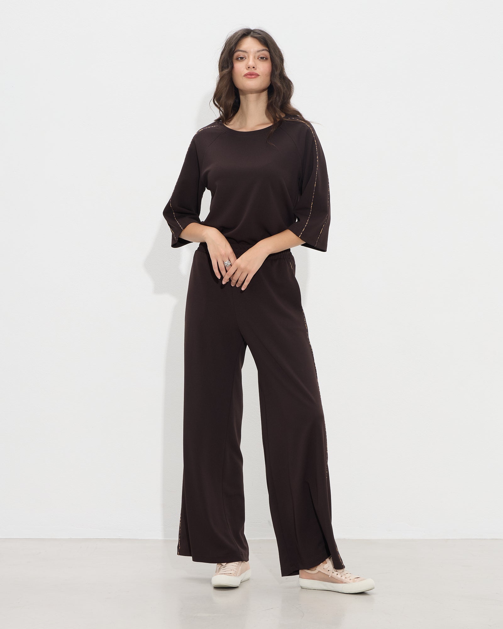 Passager- Pantallona kafe dhe te zeza prerje e gjere me detaje ne ane