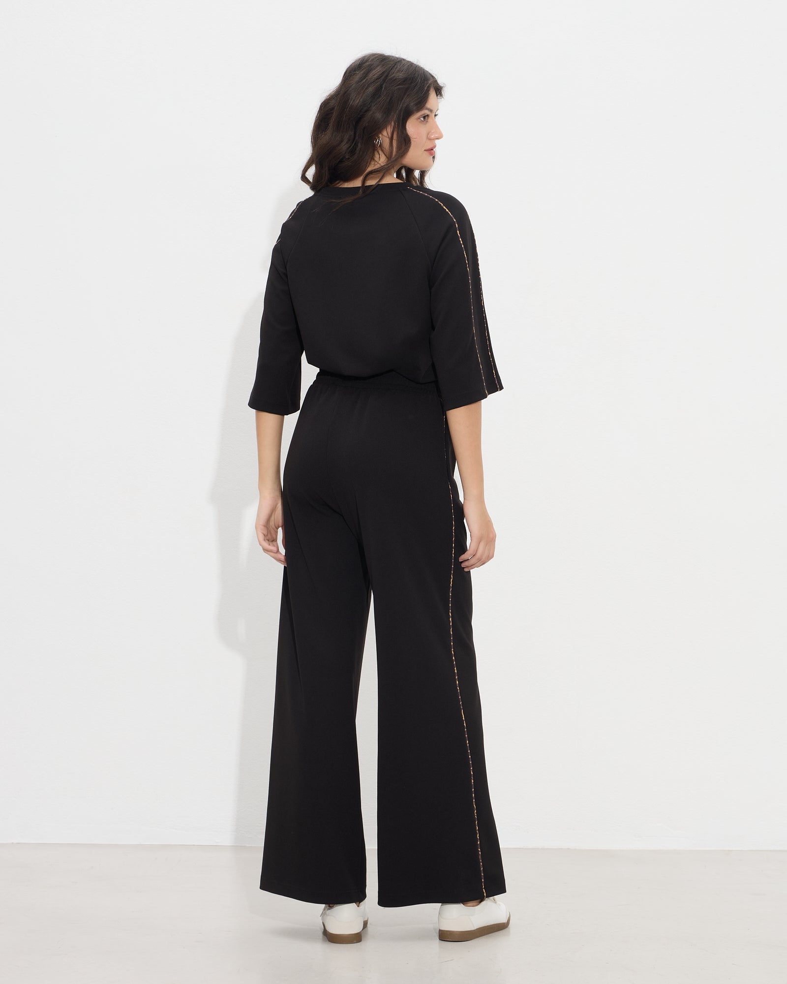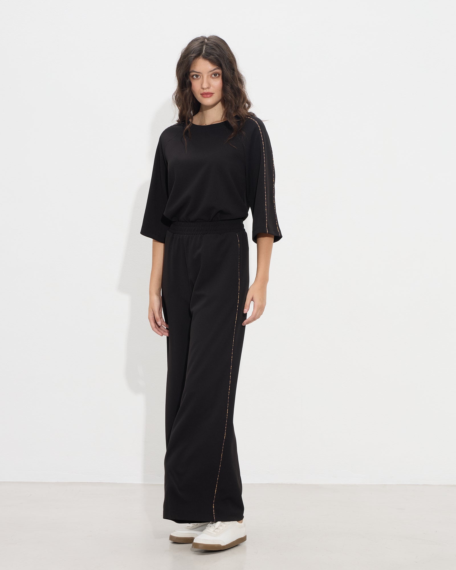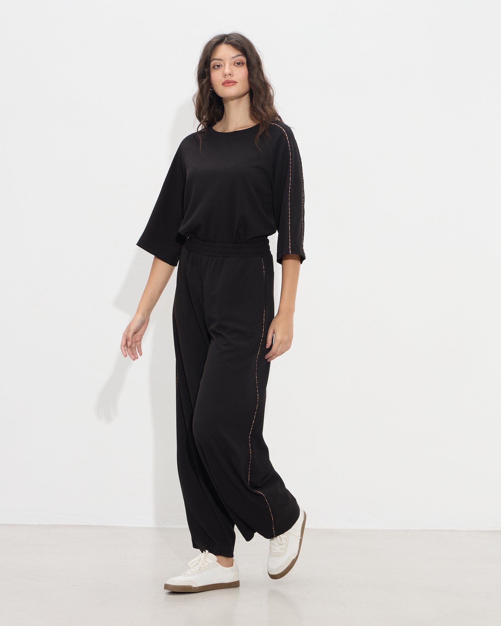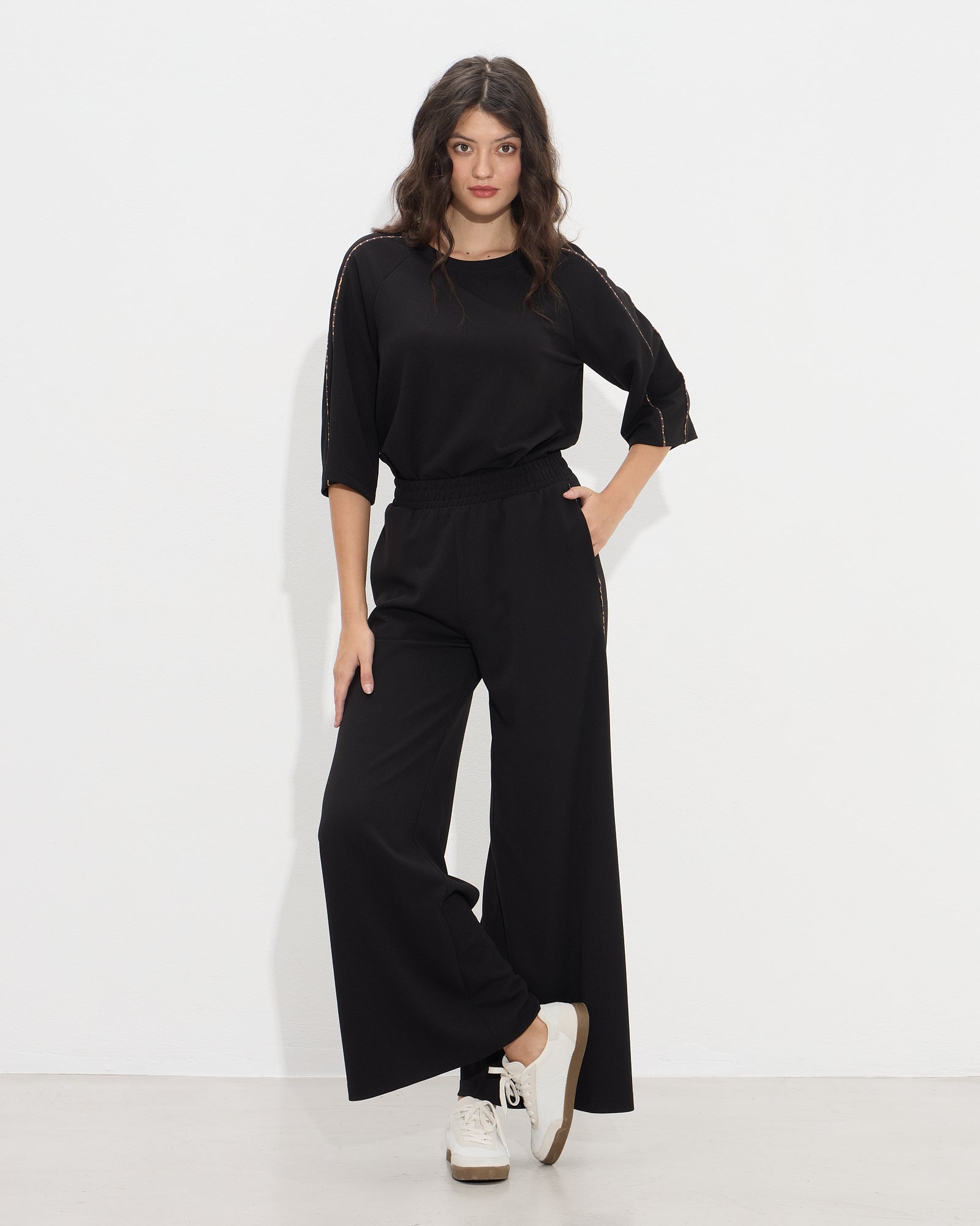 Passager- Pantallona kafe dhe te zeza prerje e gjere me detaje ne ane